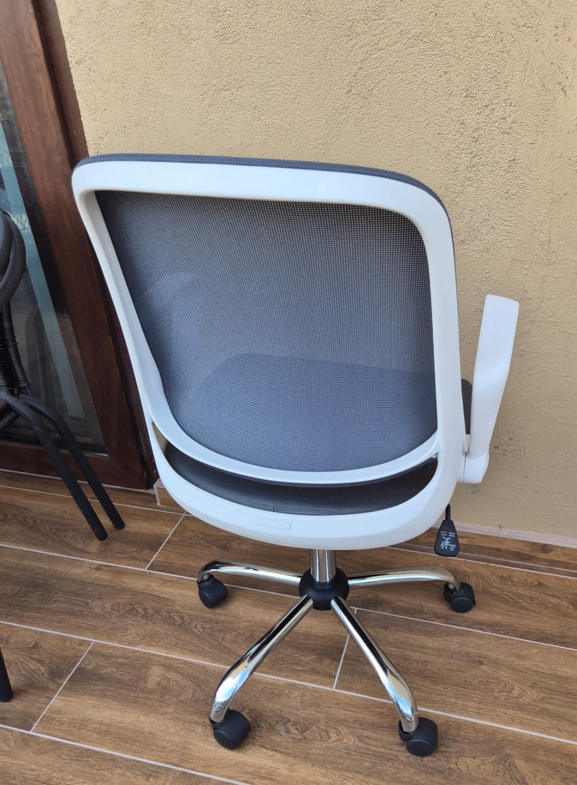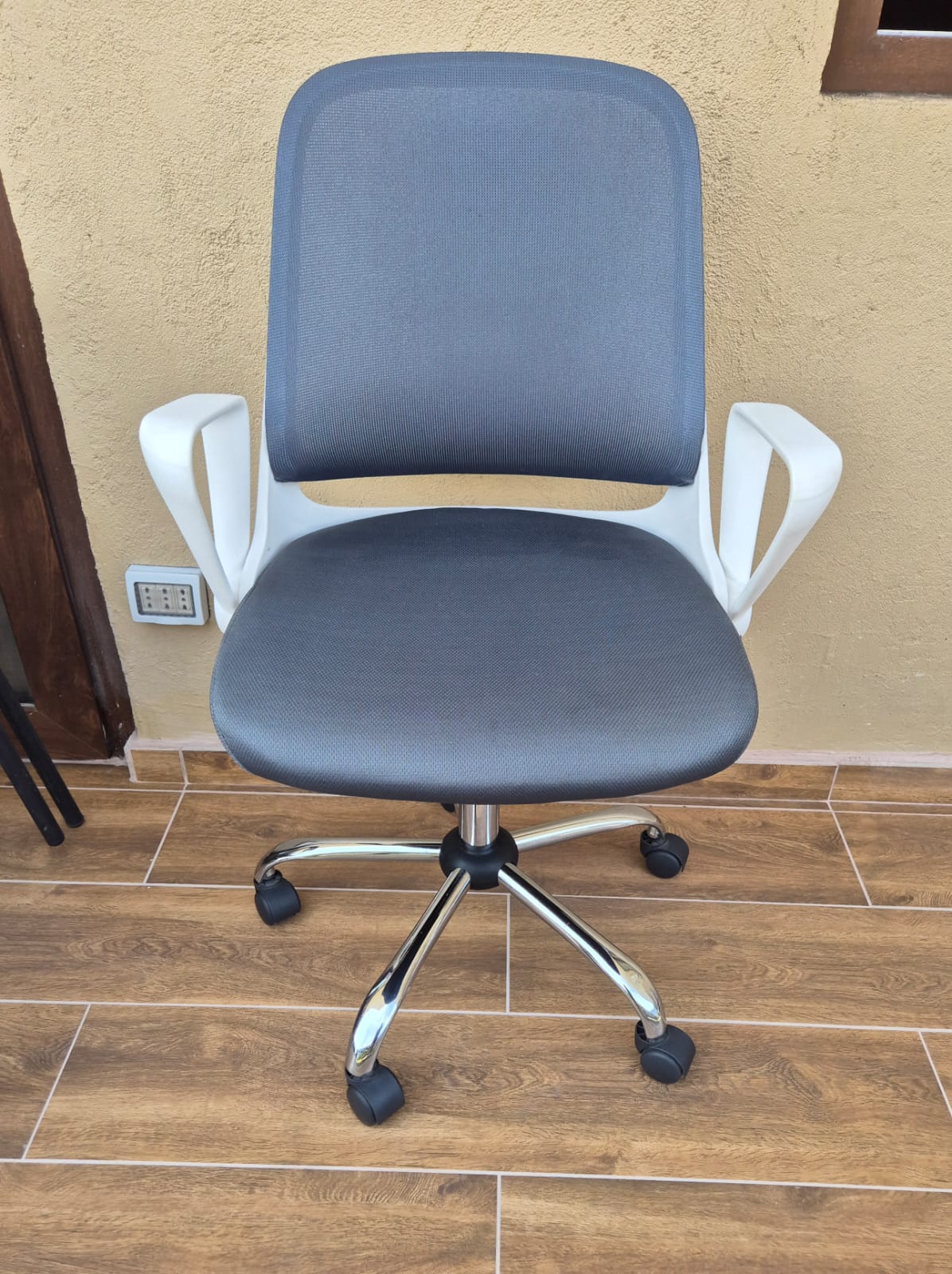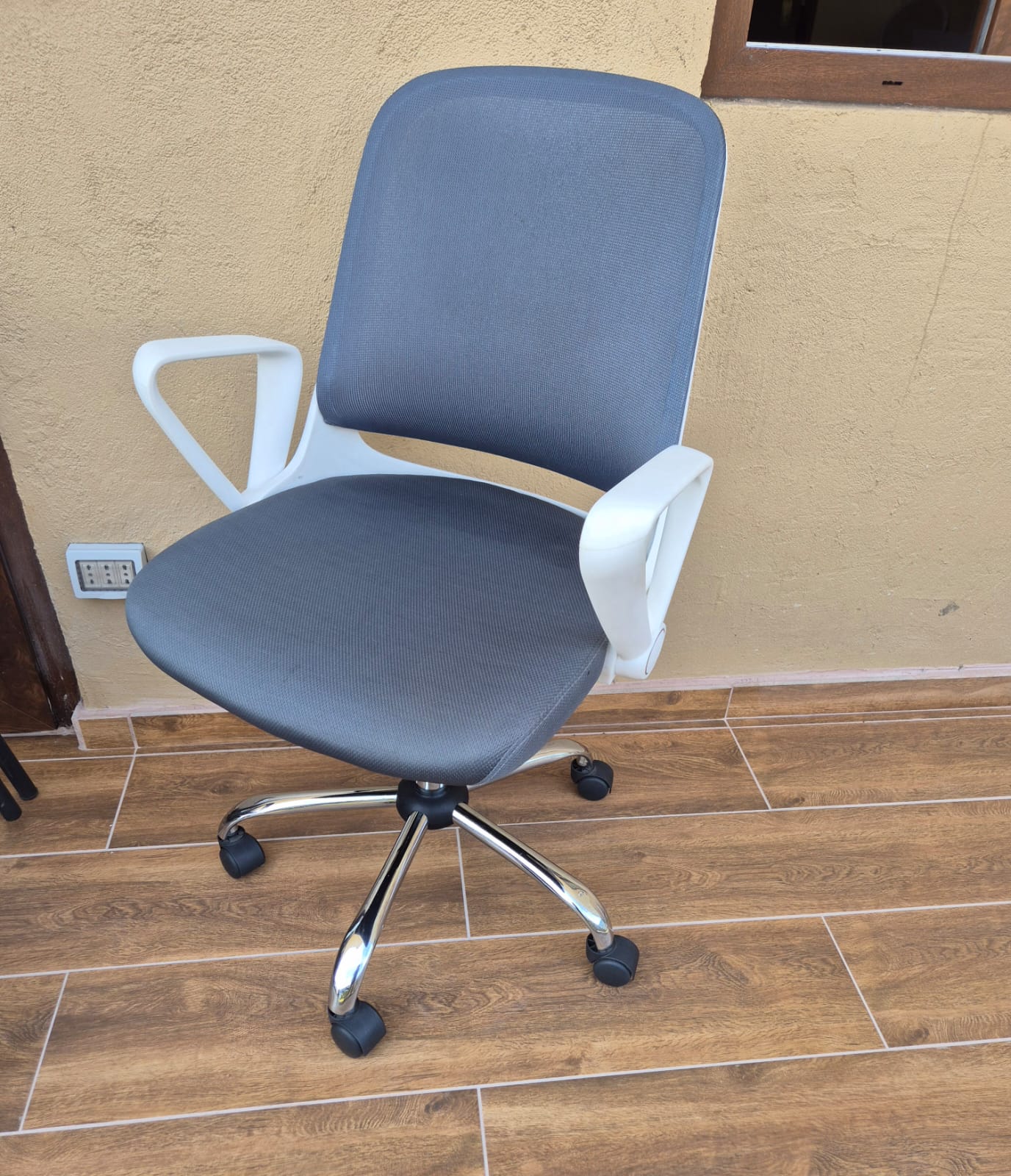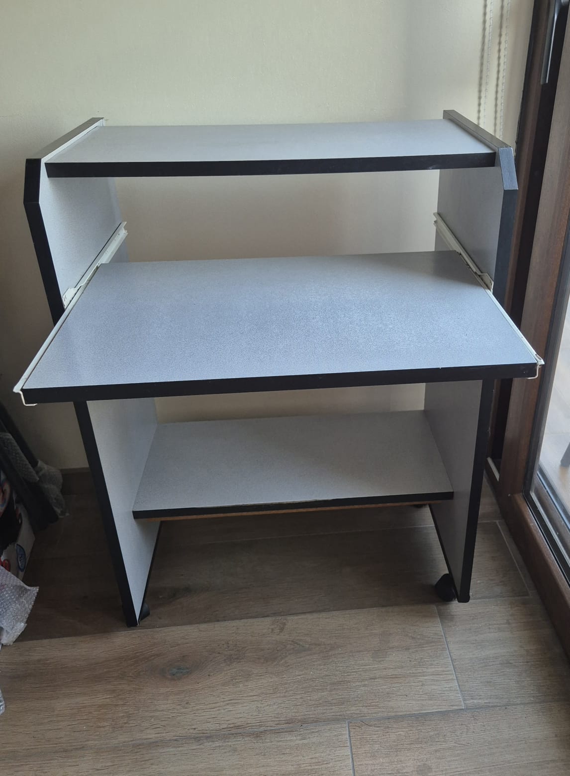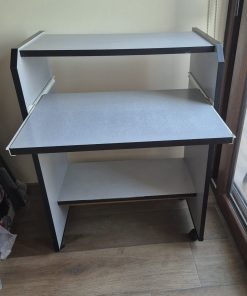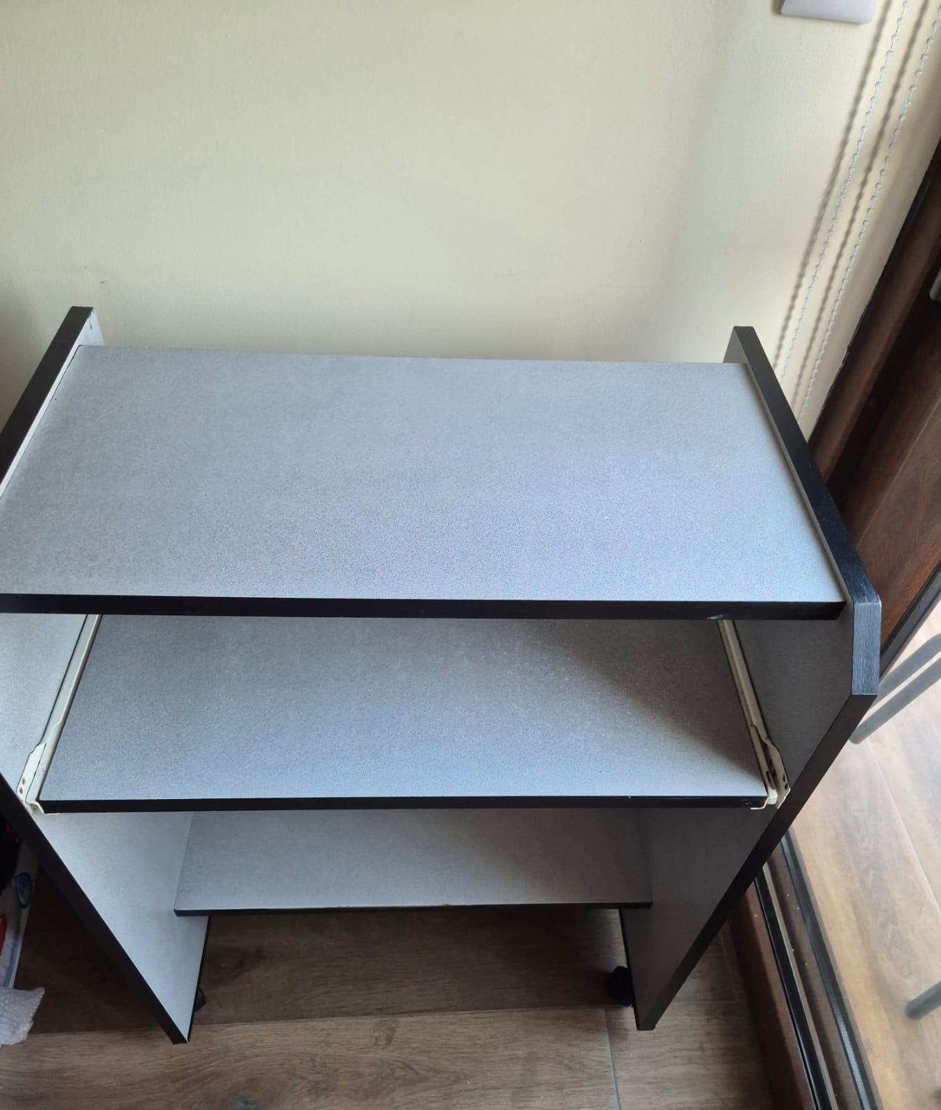 Escritorio gris con bandeja mas silla