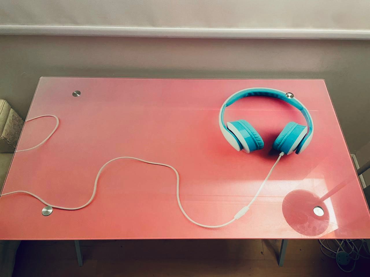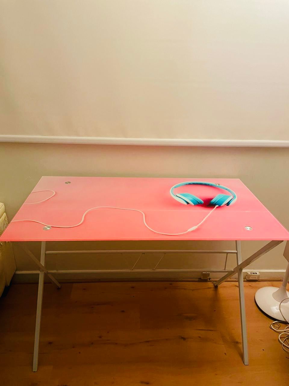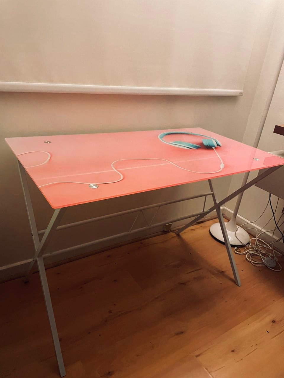 Escritorio vidrio templado rosado