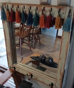 Espejo decapado con pompones