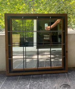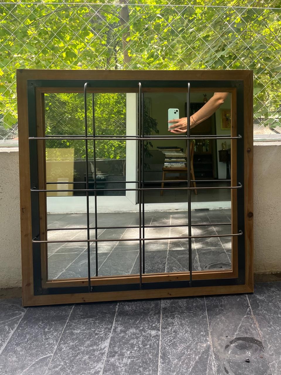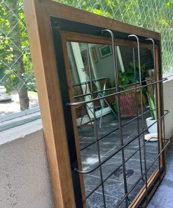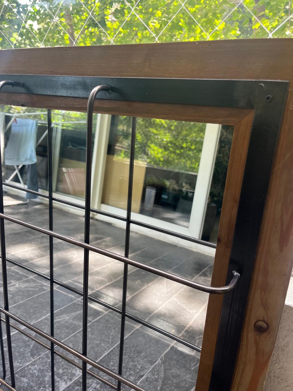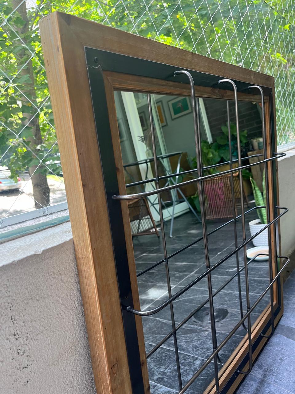 Espejo madera y fierro enrejado