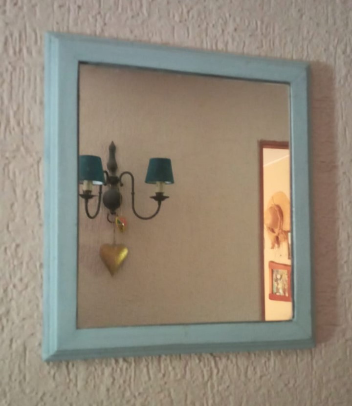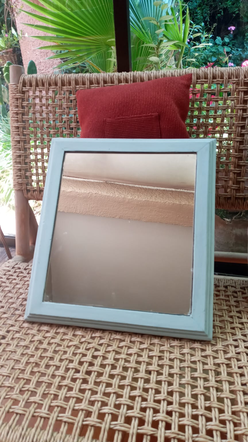 Etiquetas: espejo, espejo barato, espejo en buen estado, marco de madera, turquesa