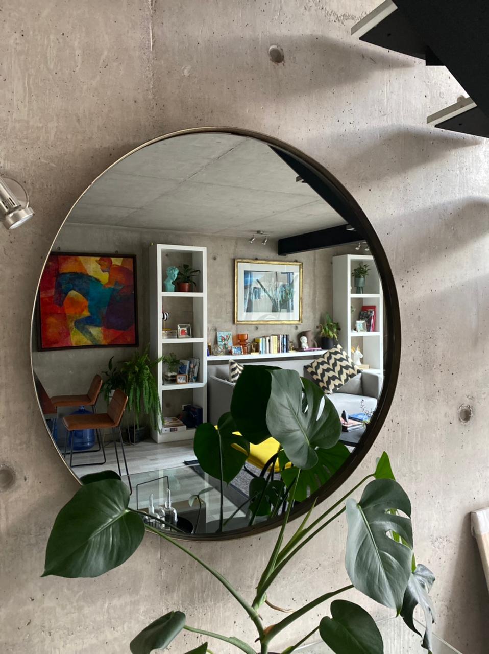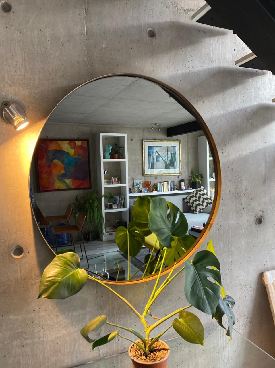 Etiquetas: espejo, espejo con poco uso, espejo efecto humo, espejo en buen estado, espejo marco dorado, espejo redondo