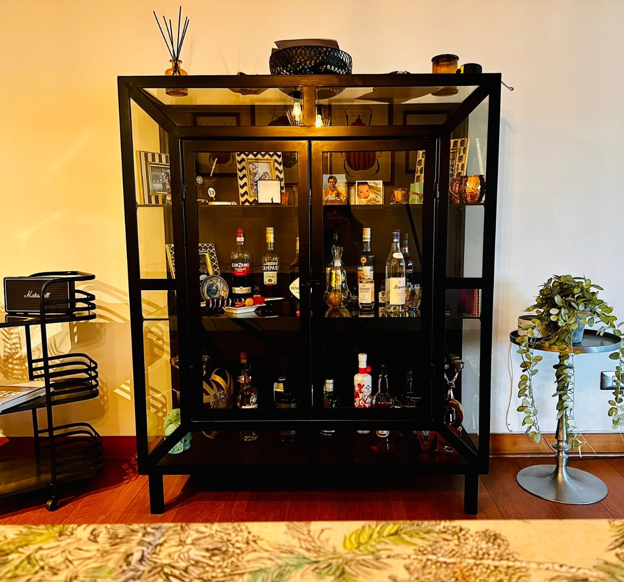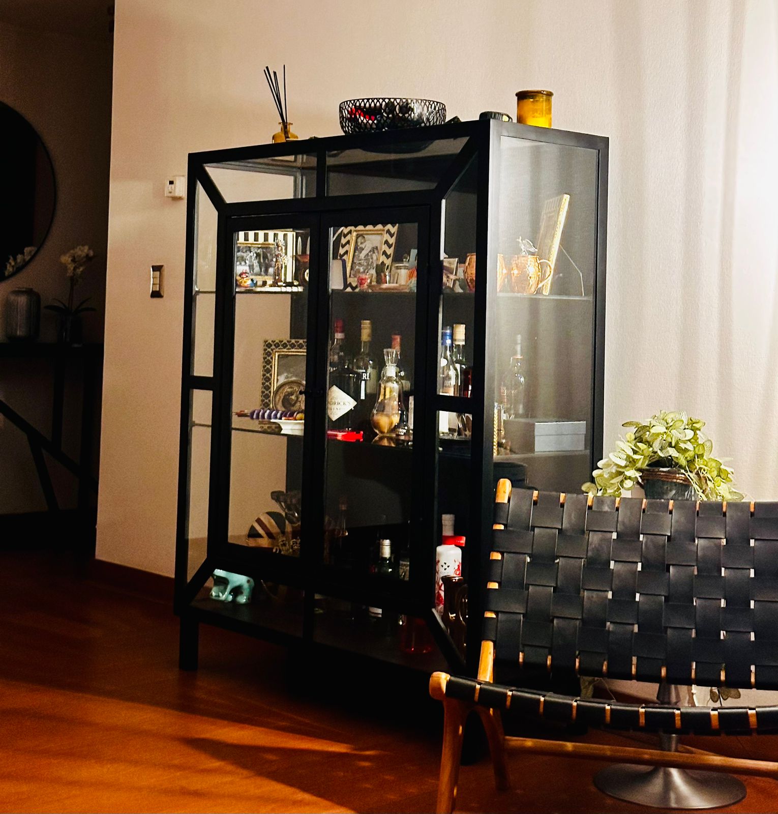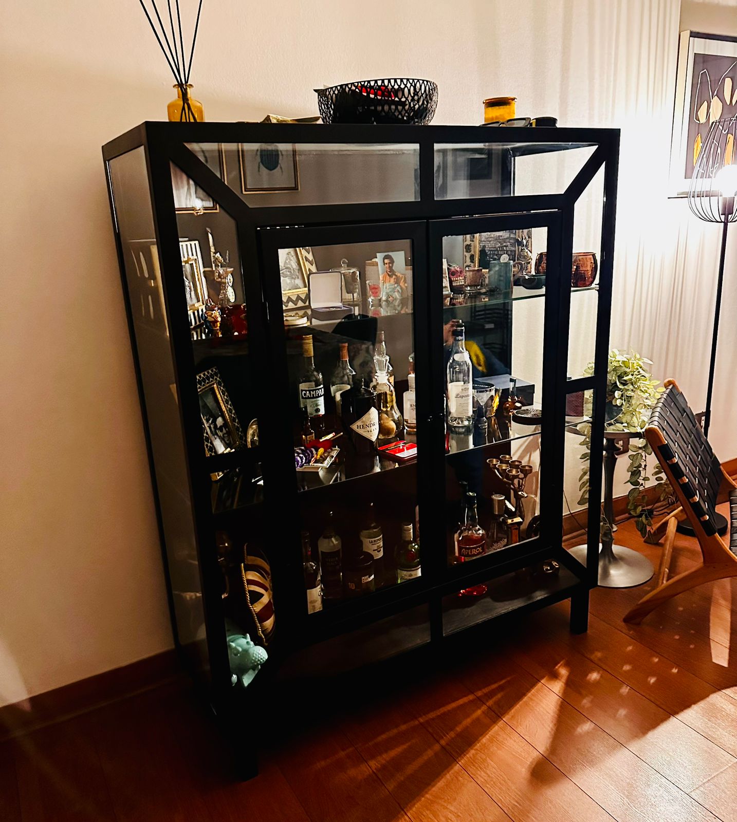 Etiquetas: brookline, buen estado, estante, metal, negro, rosen, vidrio