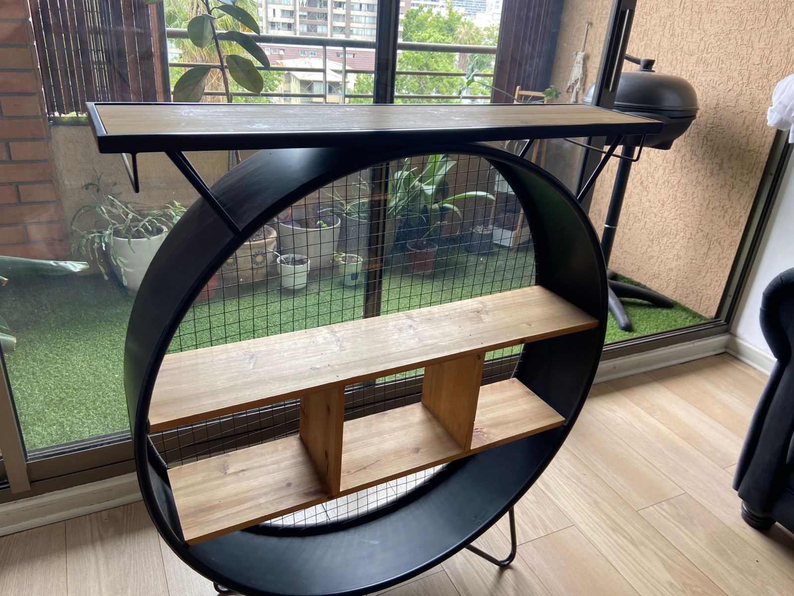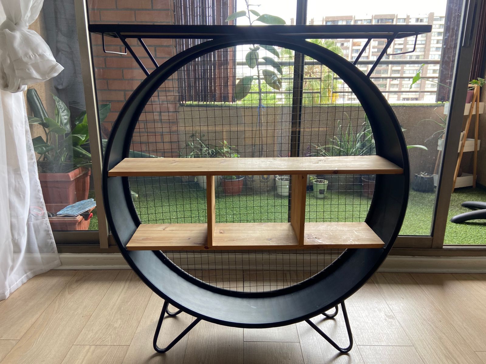Estante circular industrial diseño metal madera