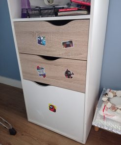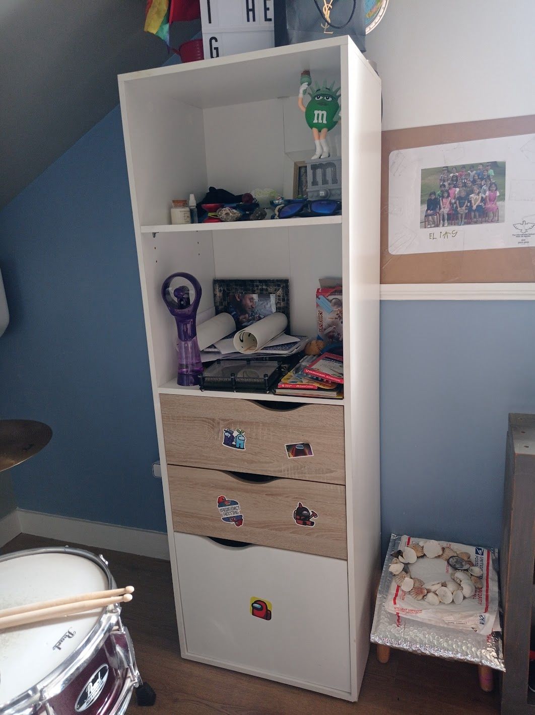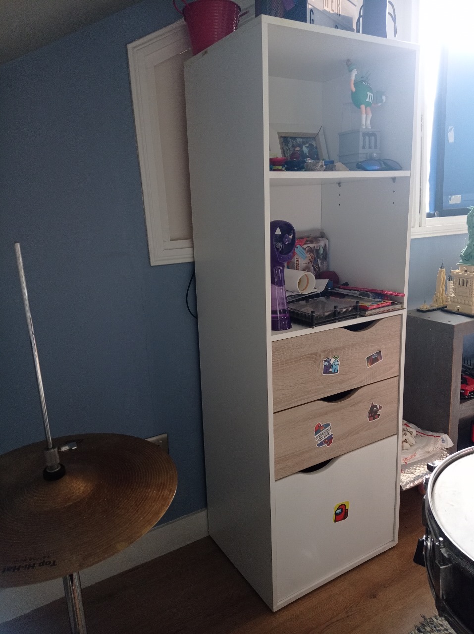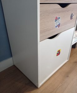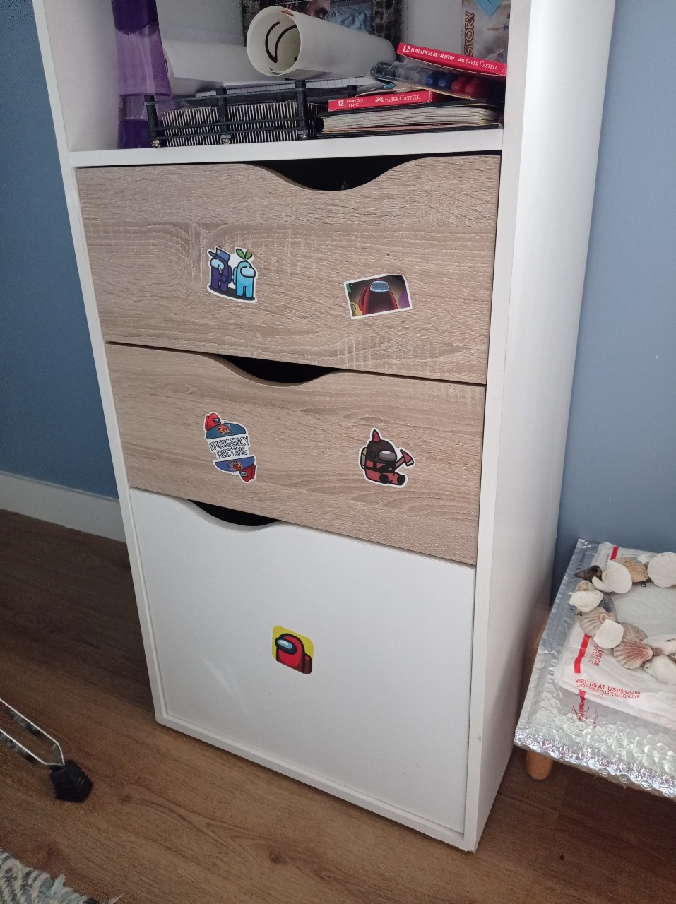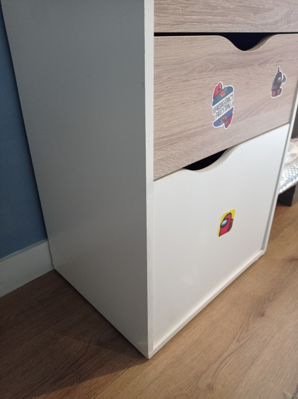 Desgaste natural por uso, tiene calcamonías en los cajones.