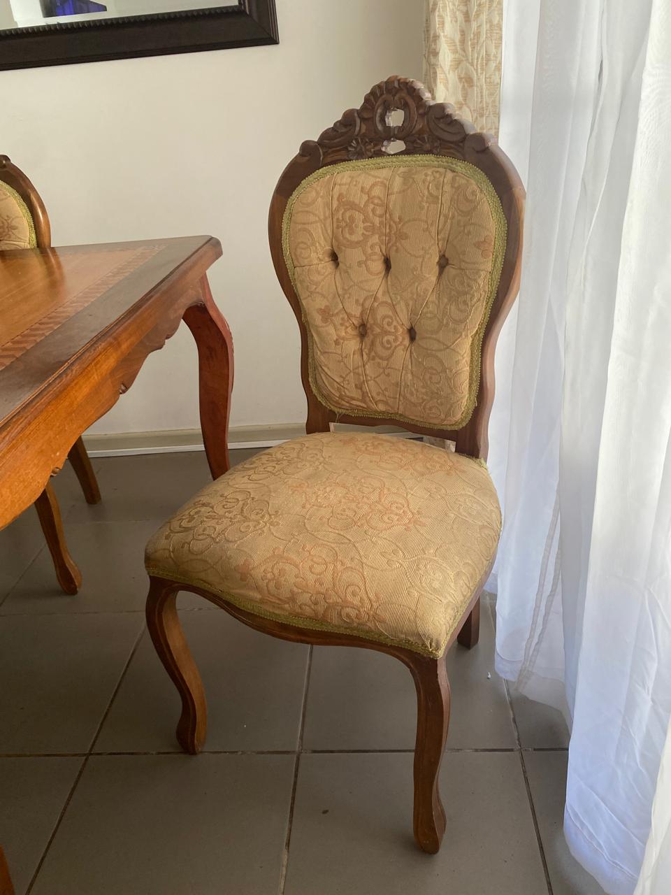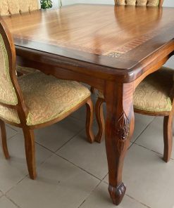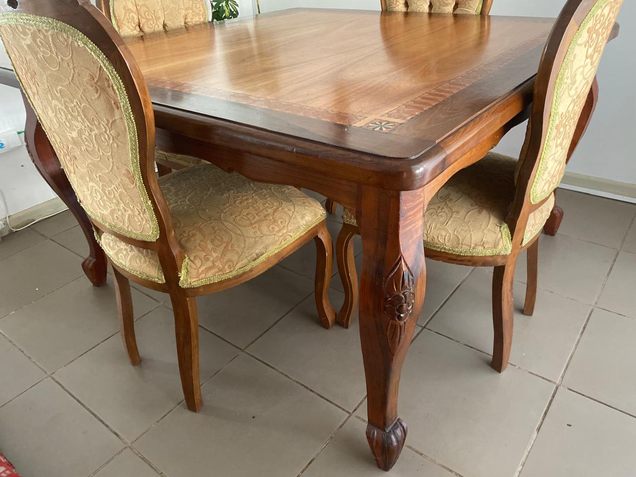 Juego comedor de madera de ciprés y cubierta de cristal 6 sillas