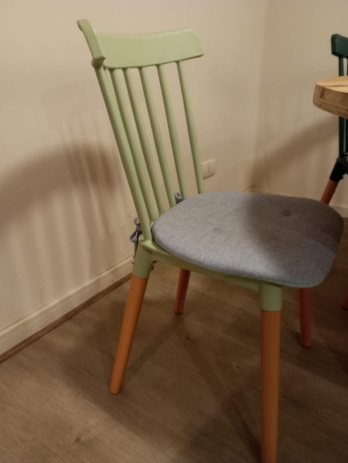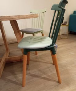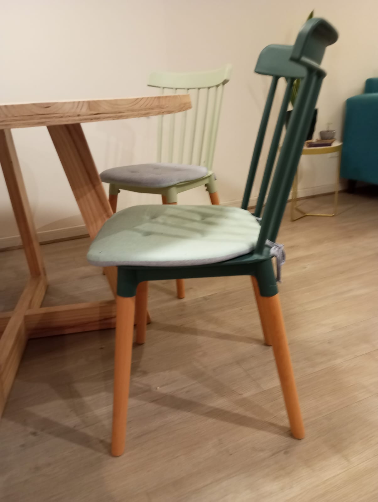 sillas color petróleo y verde menta, cada silla incluye cojín