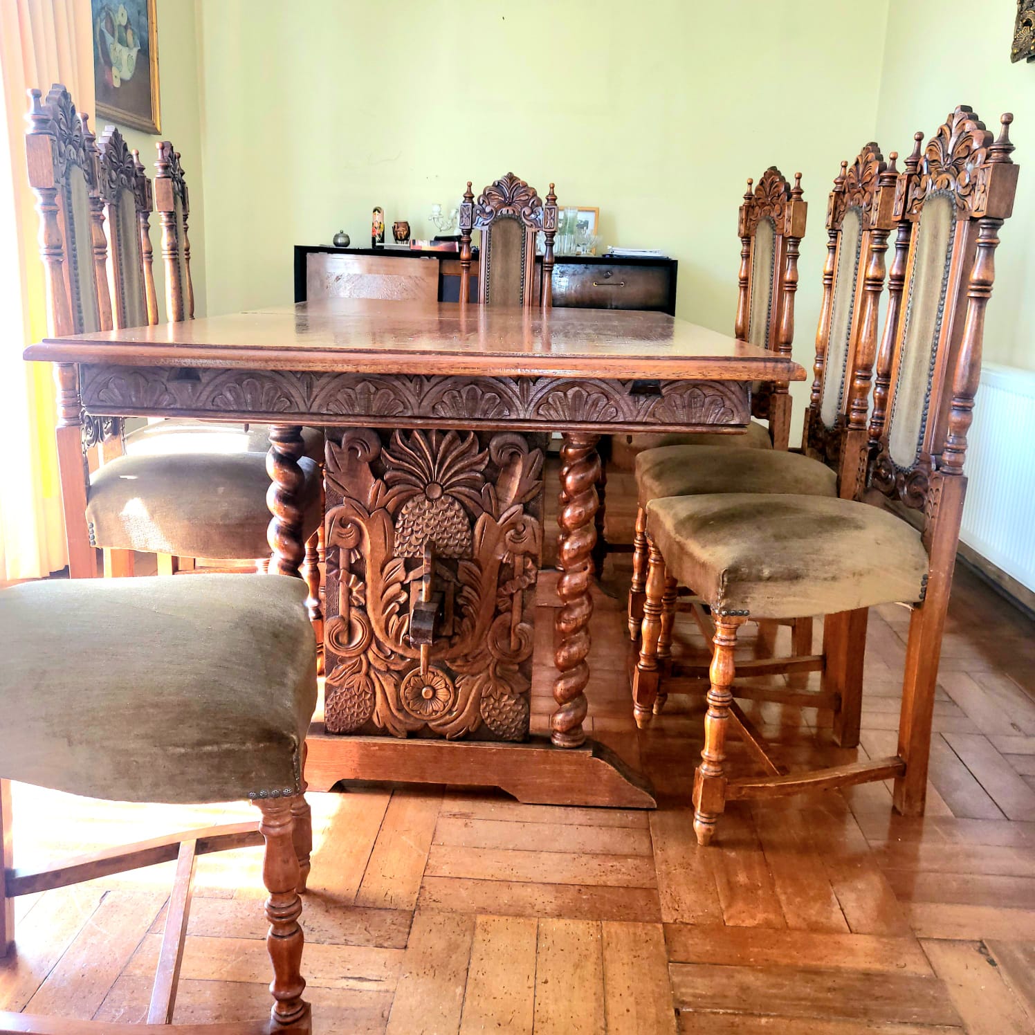 Etiquetas: 8 sillas, buen estado, encina, extensible, juego-comedor