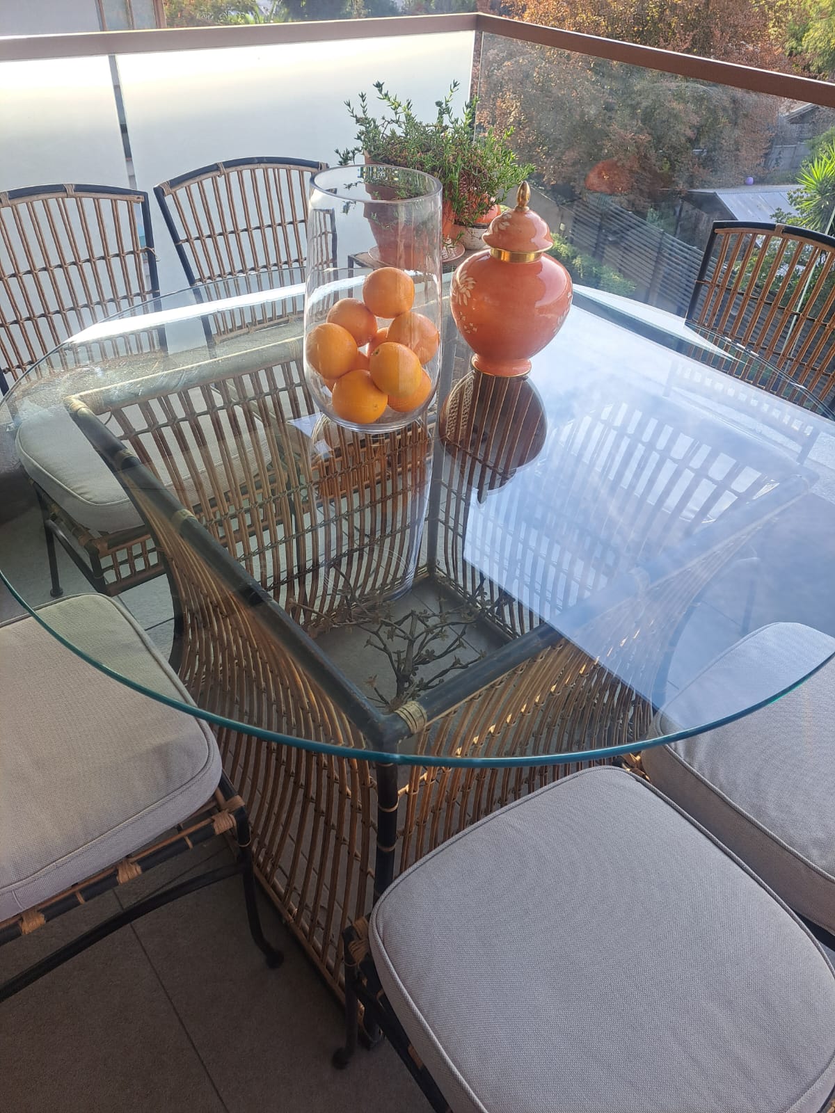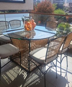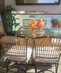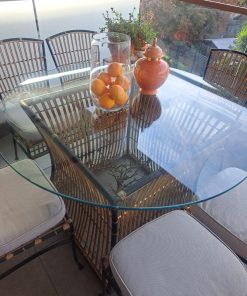 Juego comedor de madera de ciprés y cubierta de cristal 6 sillas