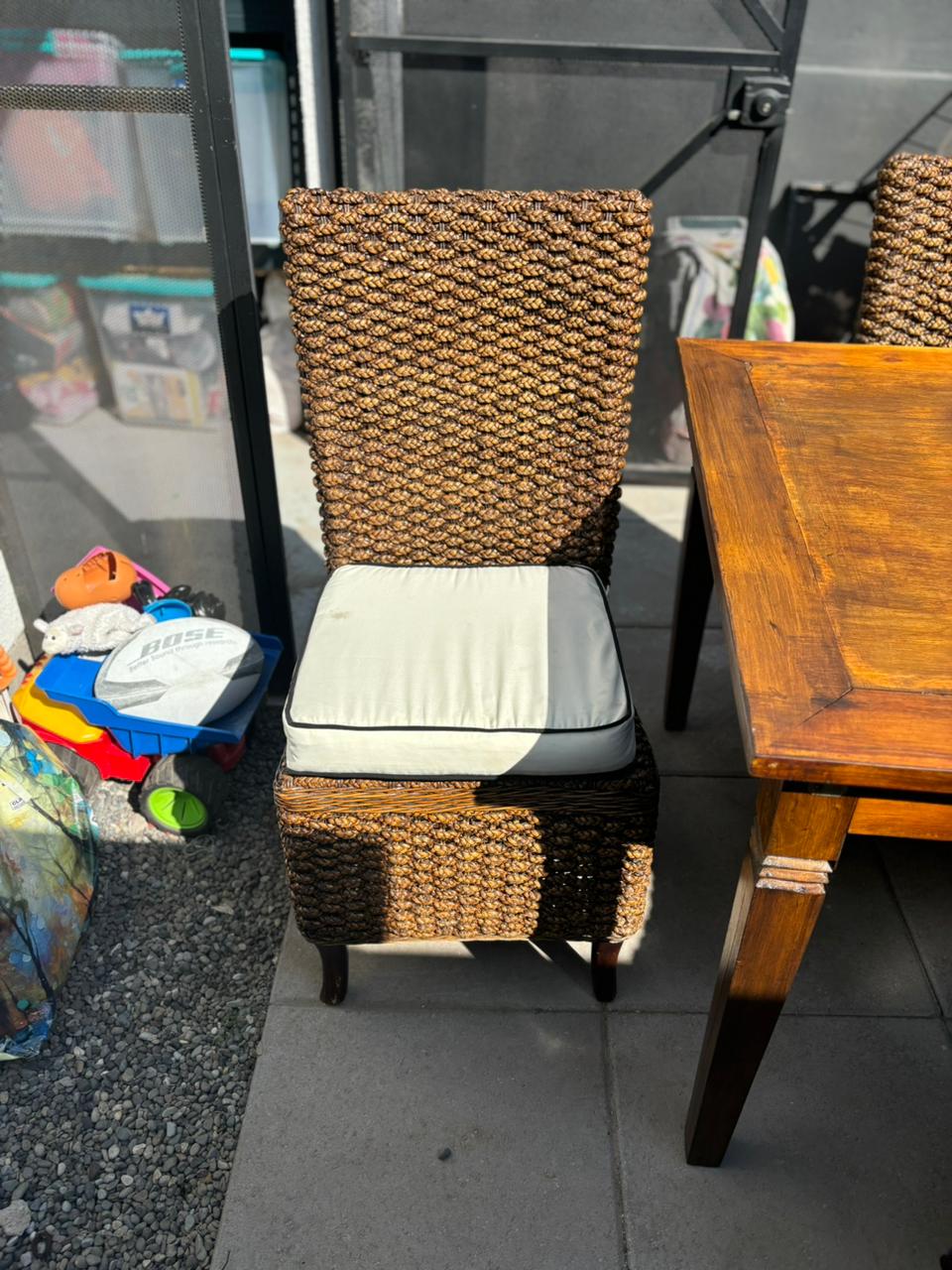 Mesa de madera, sillas con cojines con cierre, todo buen estado
