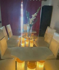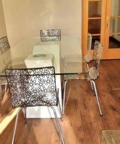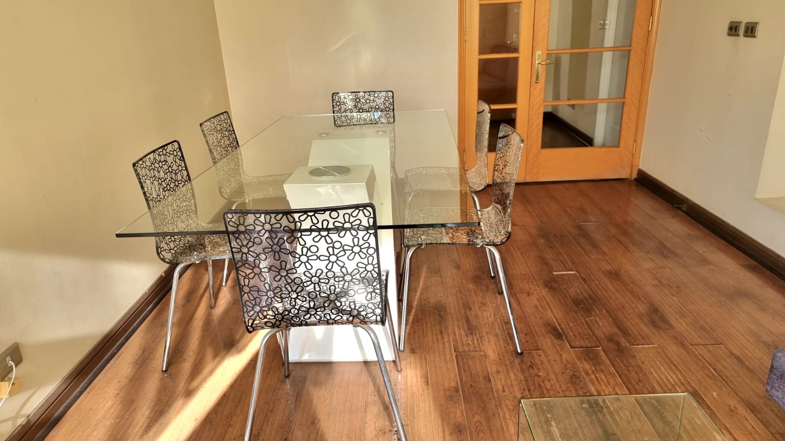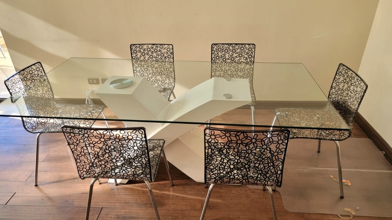 Juego comedor de madera de ciprés y cubierta de cristal 6 sillas