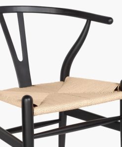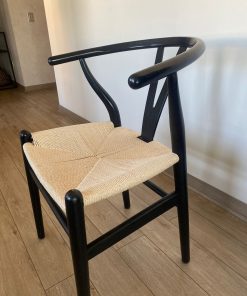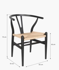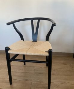 Material: madera negra + asiento tejido cuerda trenzada natural