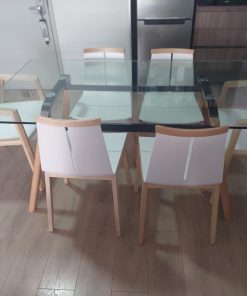 Medidas mesa 160 x 90 x 74 cm, sillas 45 x 45 x 81 cm y sitiales 61 x 58 x 79 cm