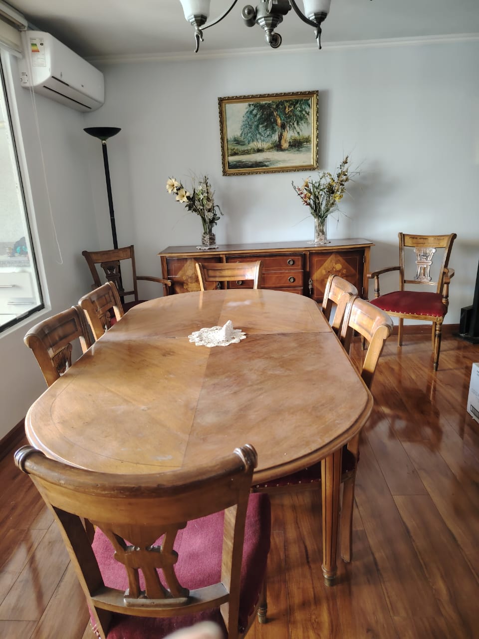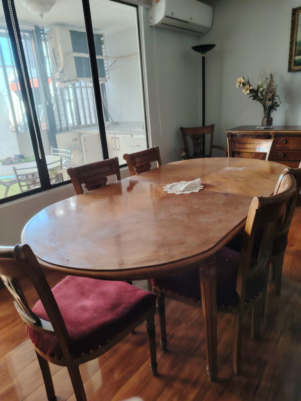 Juego comedor de madera de ciprés y cubierta de cristal 6 sillas