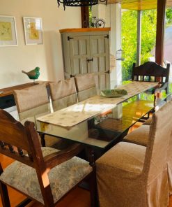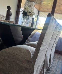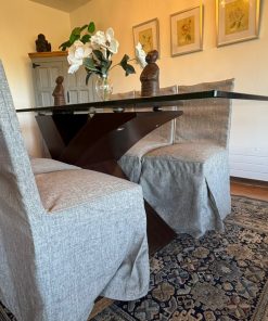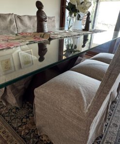 Cubierta de vidrio de 10 mm, sillas con funda de lino y tapiz sillas Fabrics