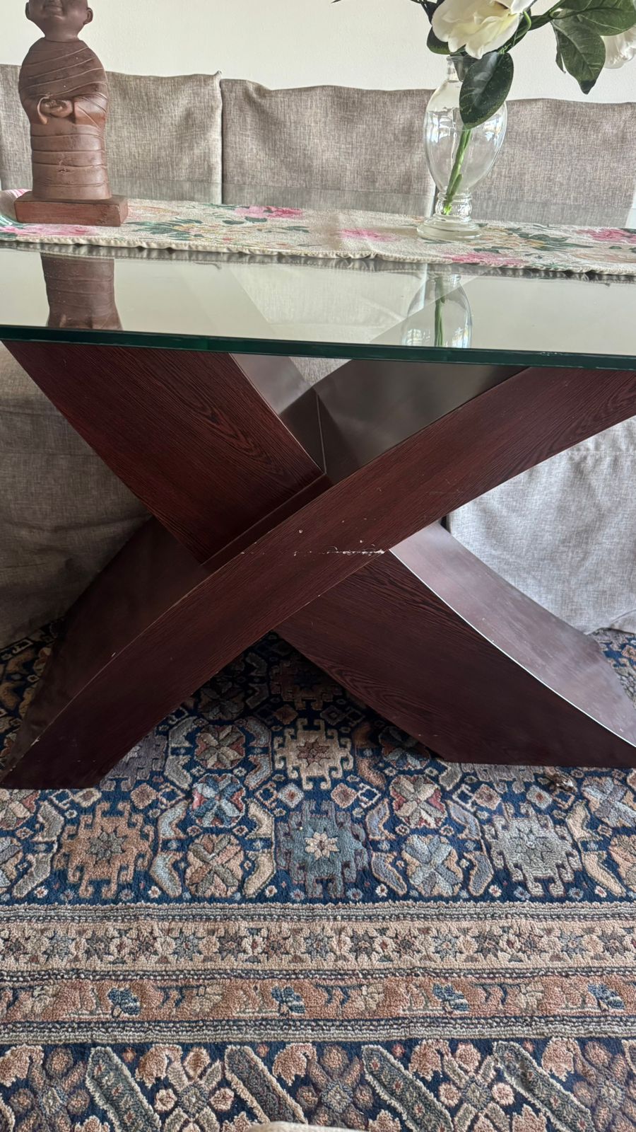 Juego comedor de madera de ciprés y cubierta de cristal 6 sillas