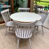 Medidas: mesa 120×120 cm silla 36x43x110 cm