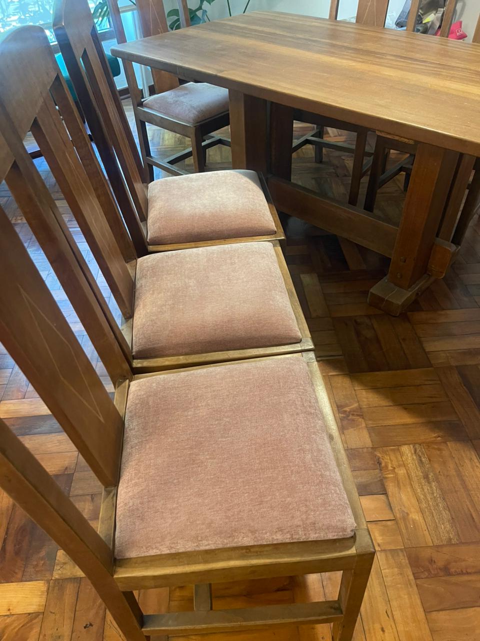 Buen estado, madera maciza, sillas recién reparadas y tapizadas color rosa pálido