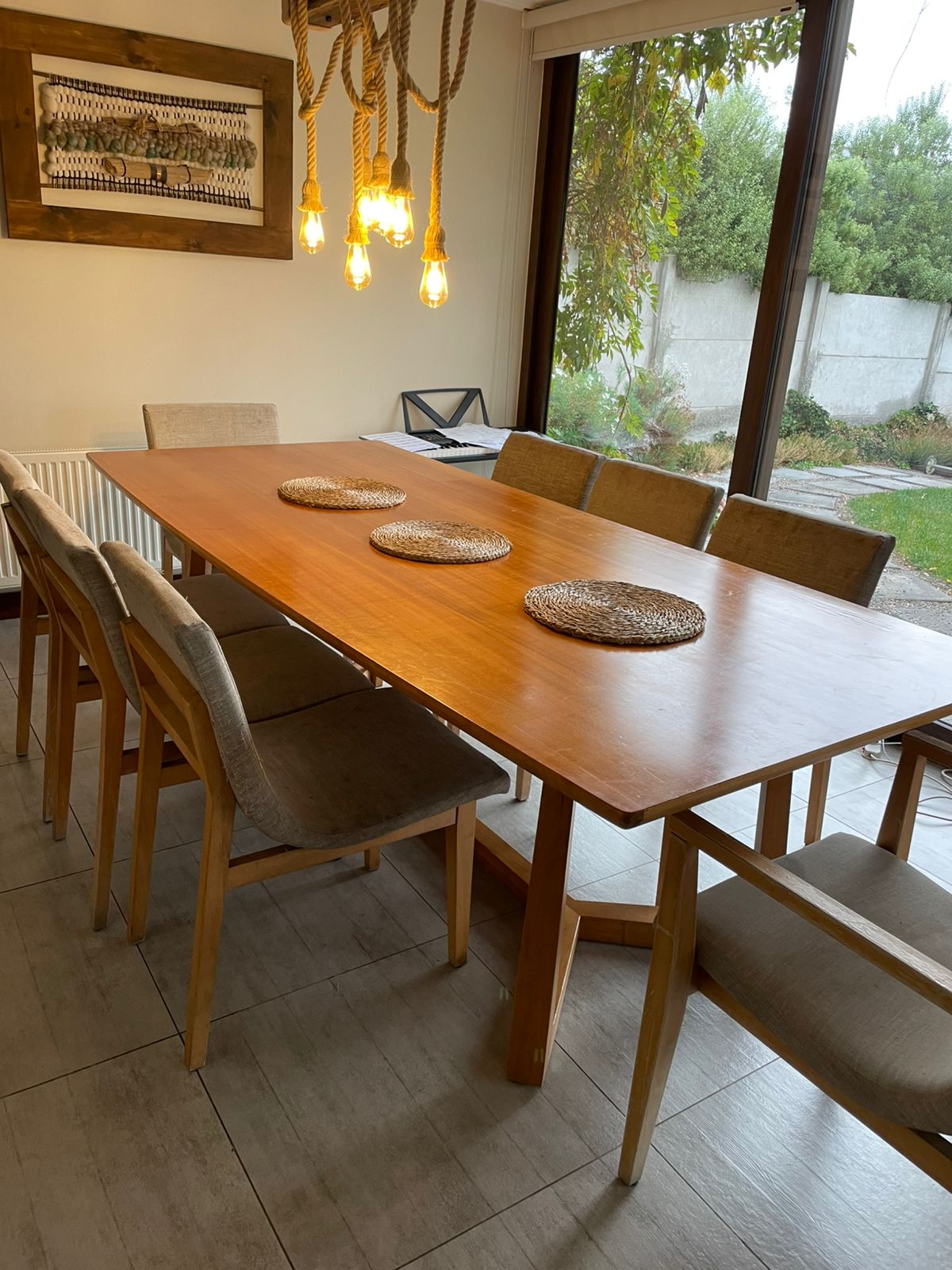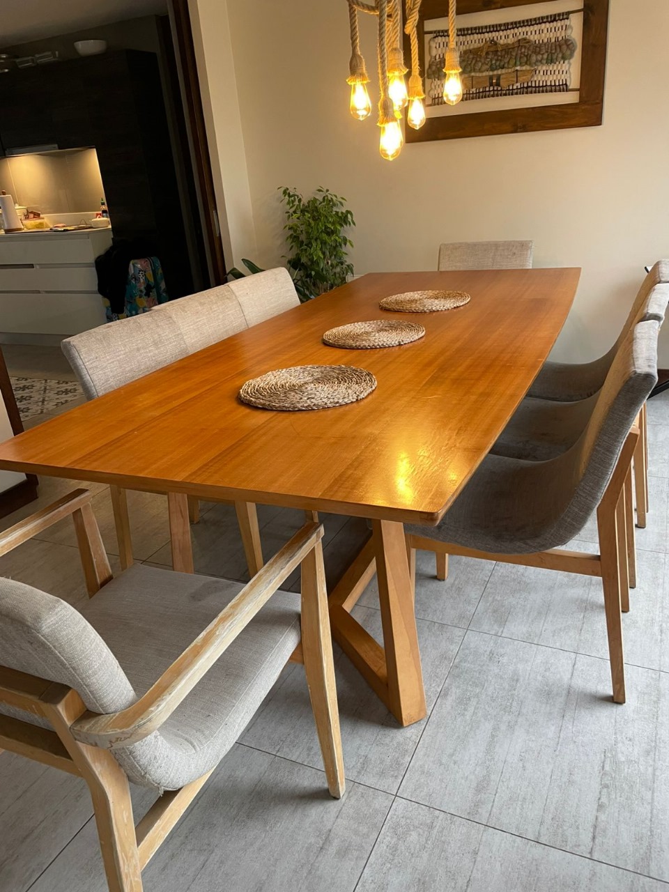 Juego de comedor madera maciza con 6 sillas y 2 sitiales