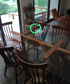 Detalle en sillas un poco hundidas por el golpe con la mesa
