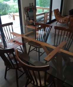 Juego de comedor vidrio templado con 6 sillas Windsor Wolf