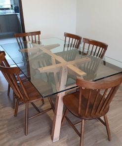 Juego de comedor vidrio templado con 6 sillas Windsor Wolf