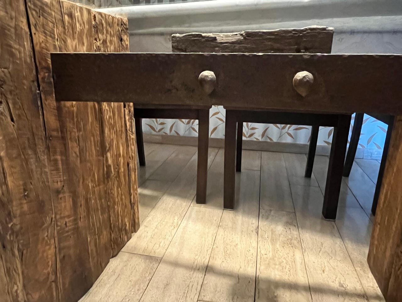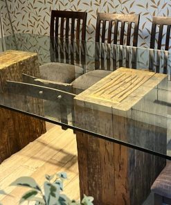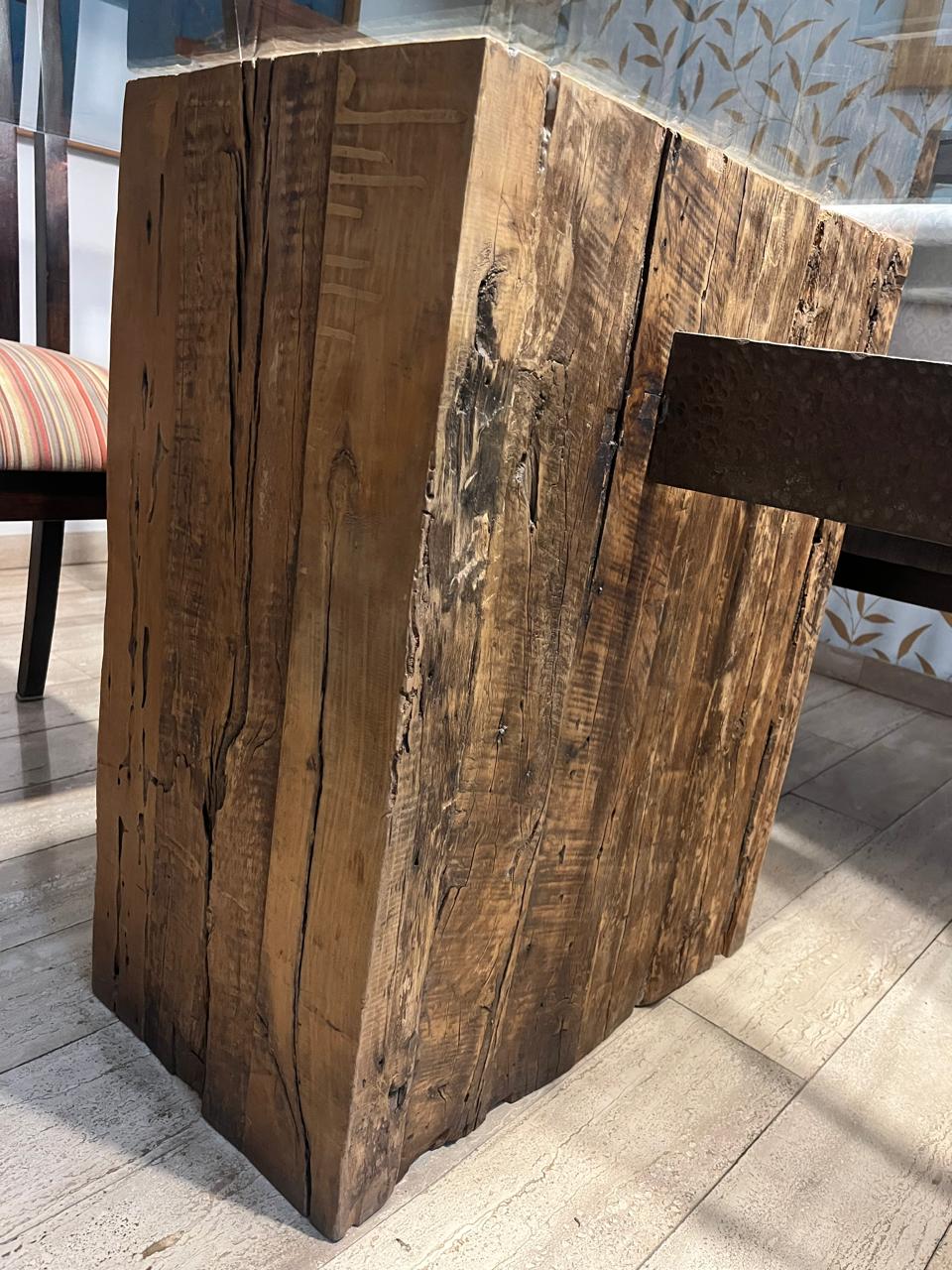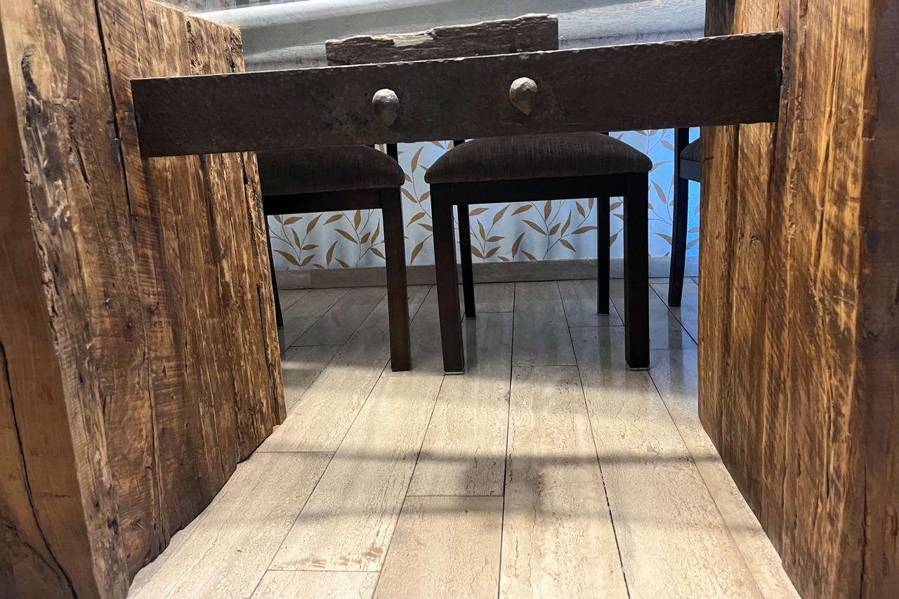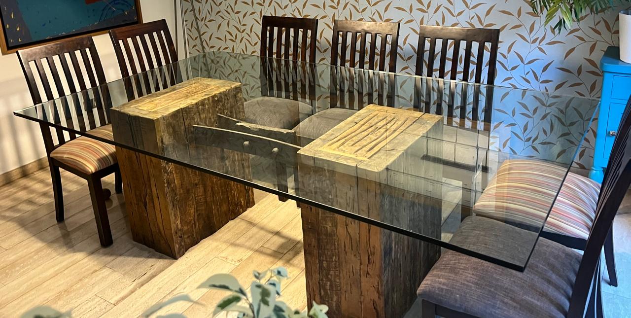 sillas de mueblista particular, base de madera y fierro es diseño de decorador, vidrio templado biselado.