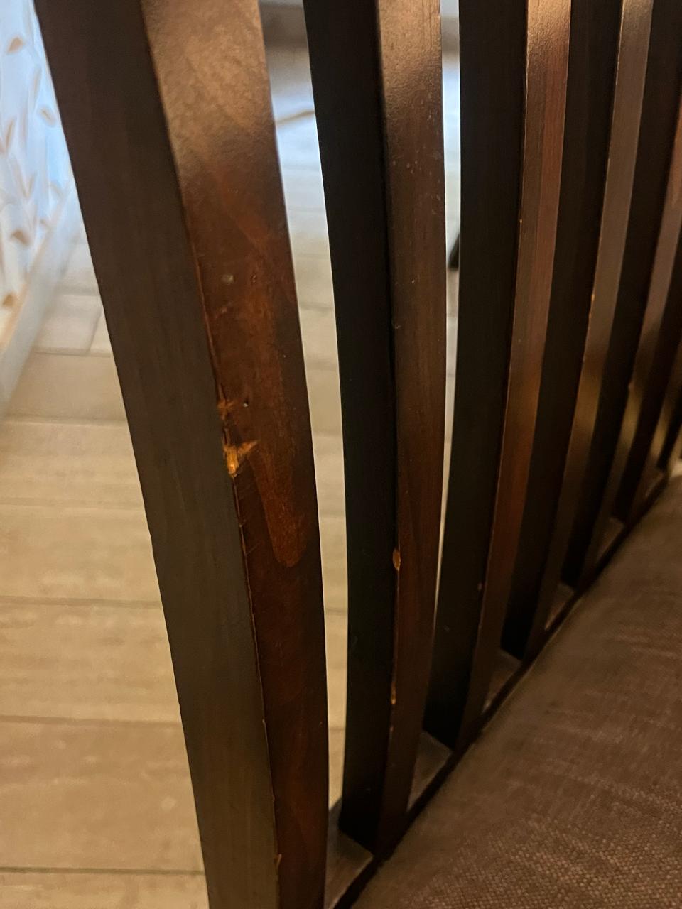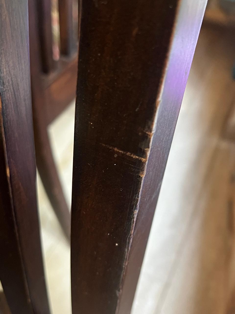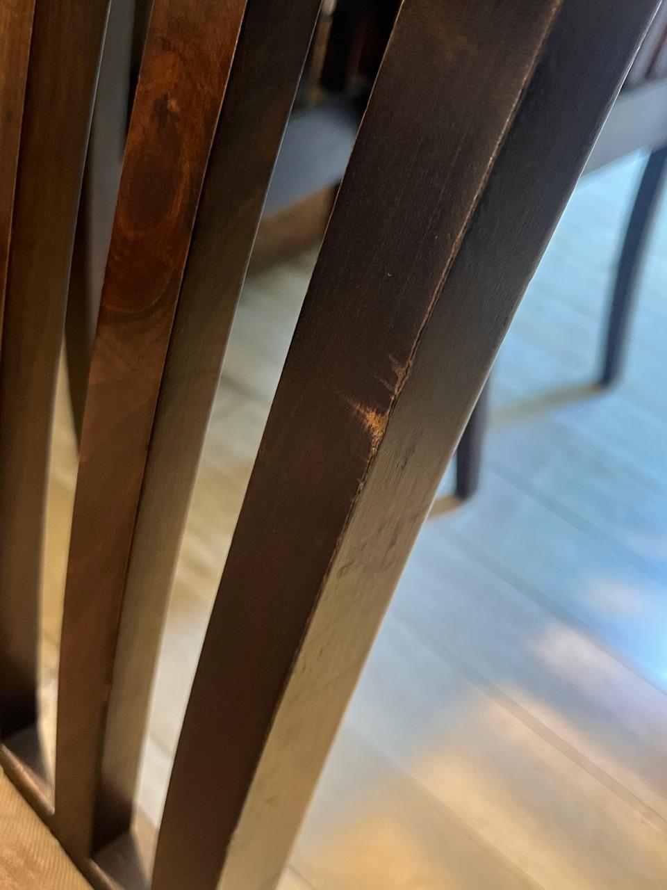 Estado: vidrio y base buen estado, 2 sillas están débiles, 4 sillas de las cabeceras hechas en otro tapiz, 8 sillas en tapiz gris aterciopelado, una sola silla manchada que sale con lavado de tapiz, vidrio con un pequeño piquete que solo se nota al tacto