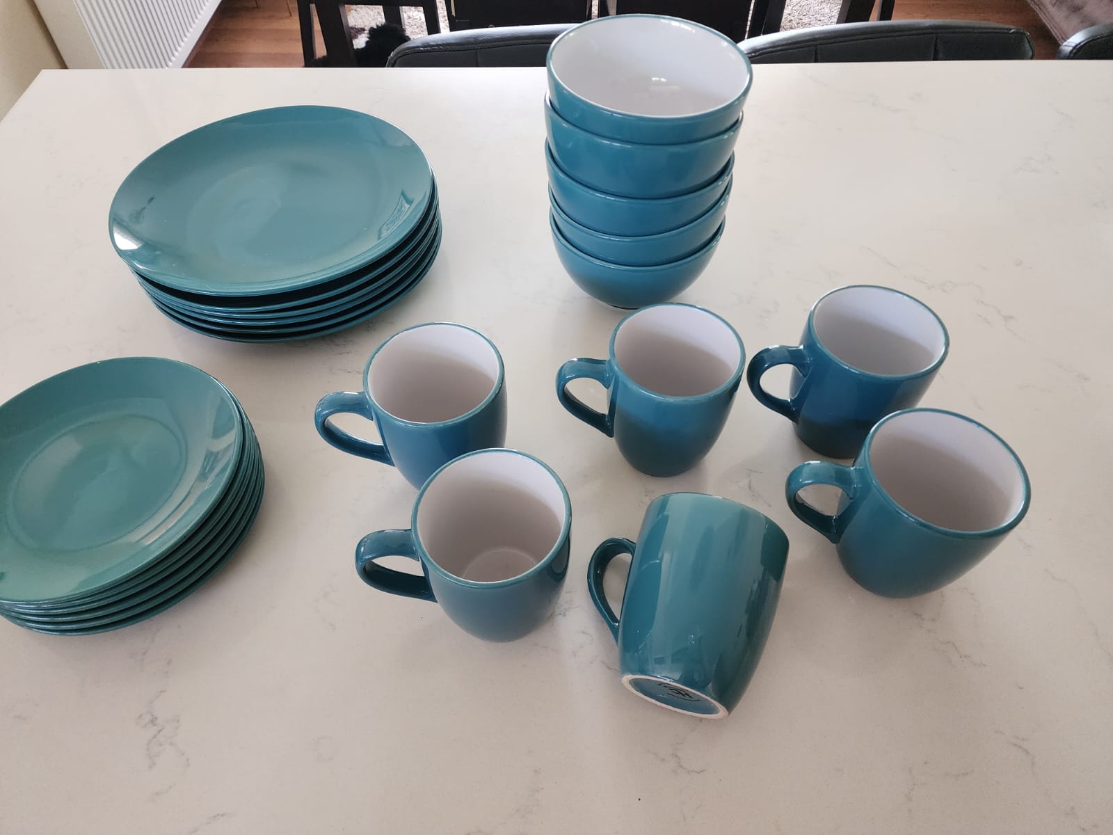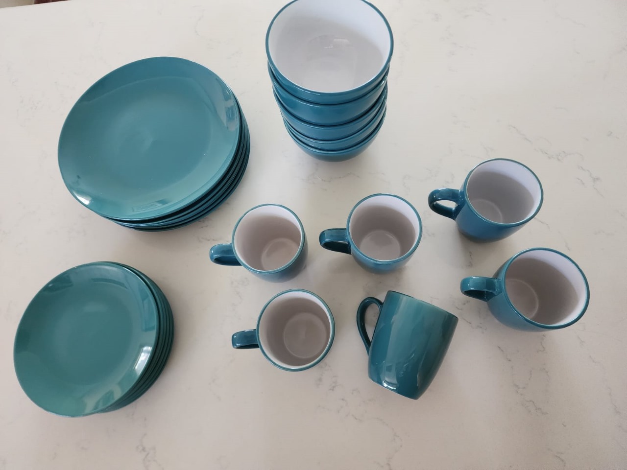 Incluye 6 platos pan, 6 platos taza, 6 tazas, 5 pocillos