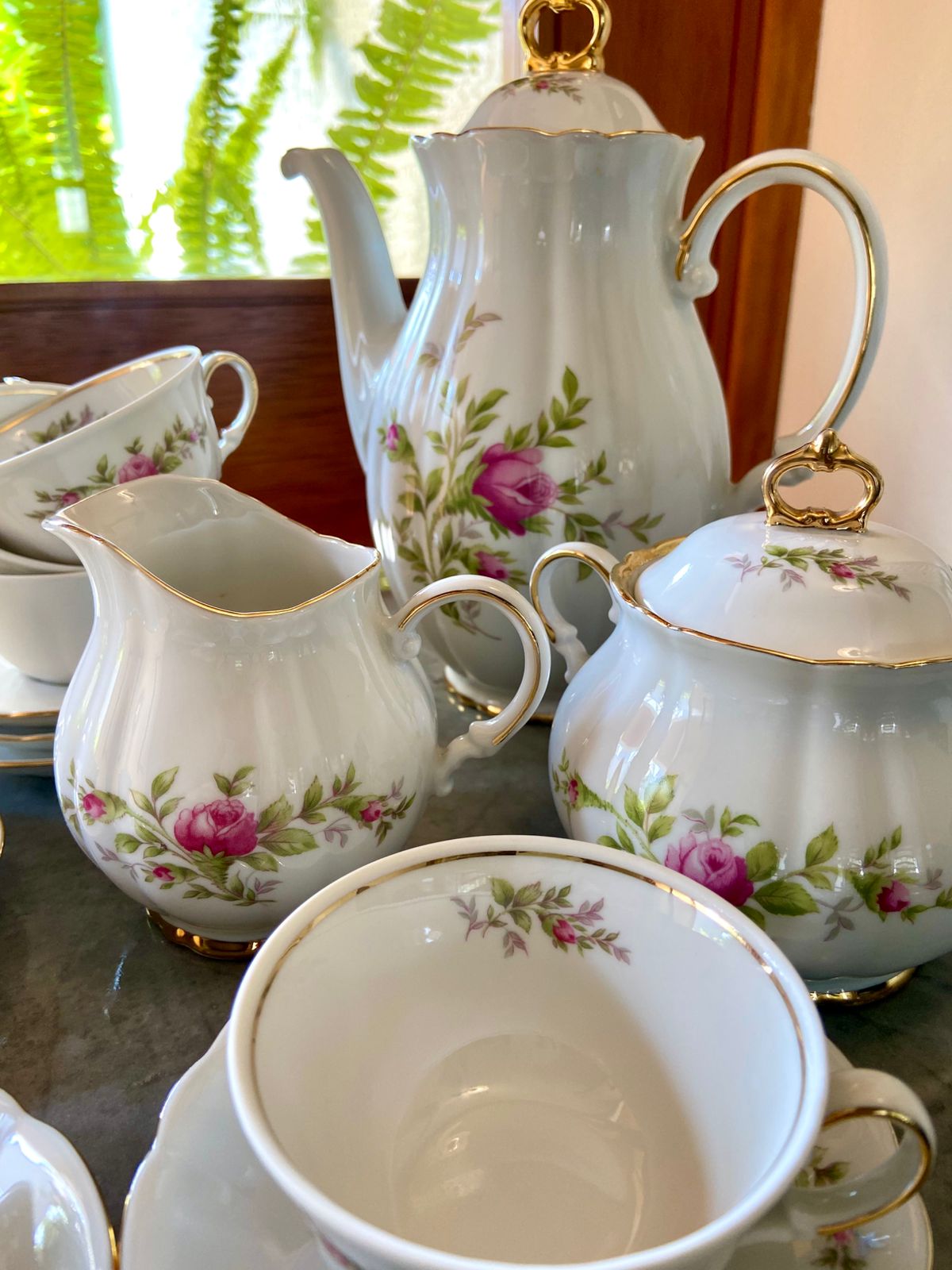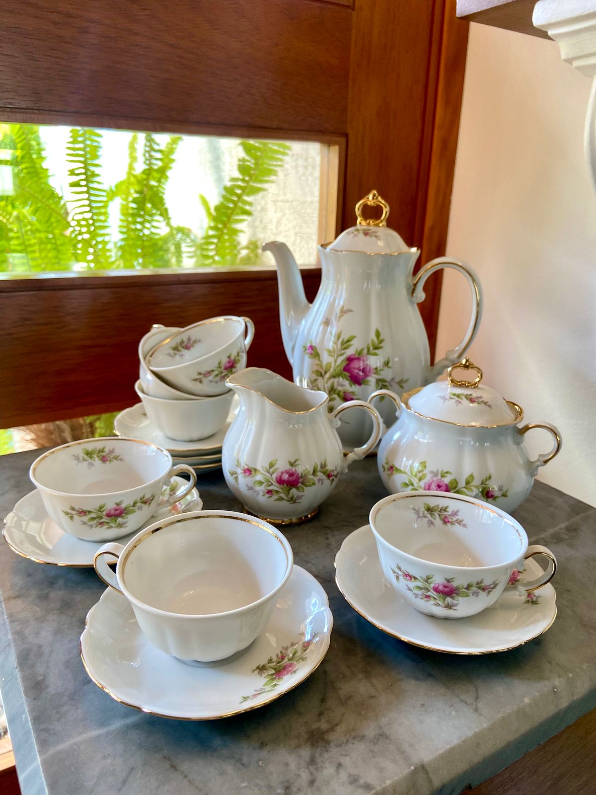 Incluye: 6 tazas, 6 platos, 1 tetera, 1 cremero y 1 azucarero