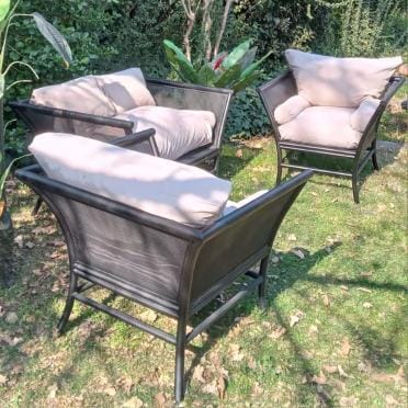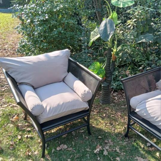 Cojines relleno pluma, fundas recién lavadas, desgaste por el sol