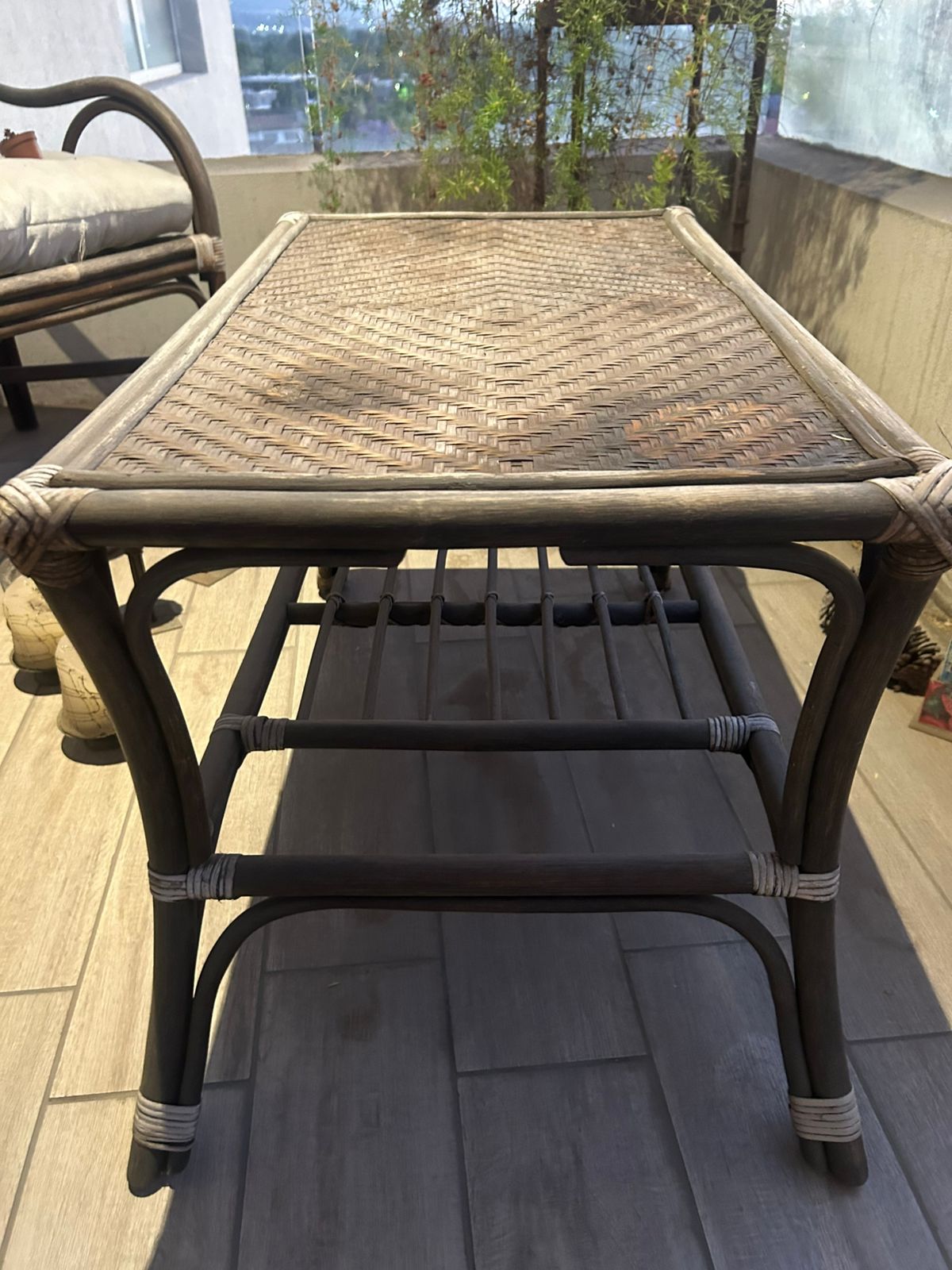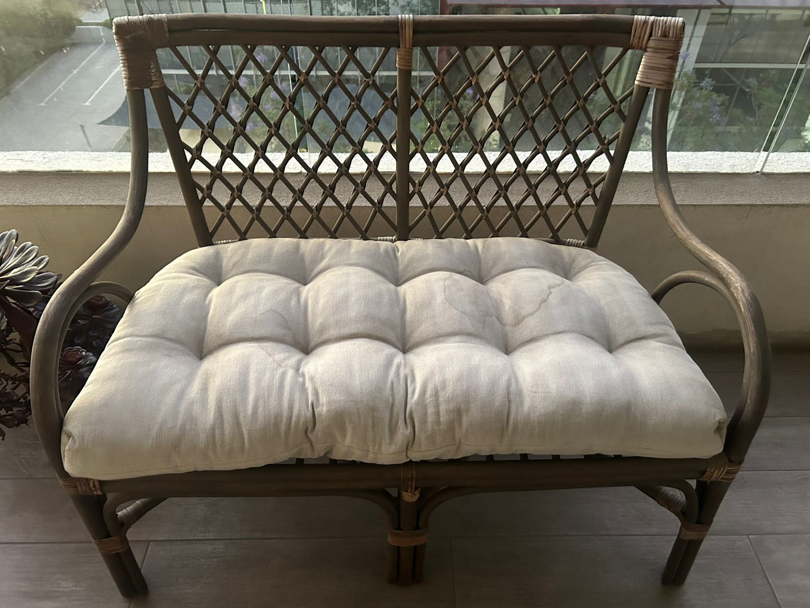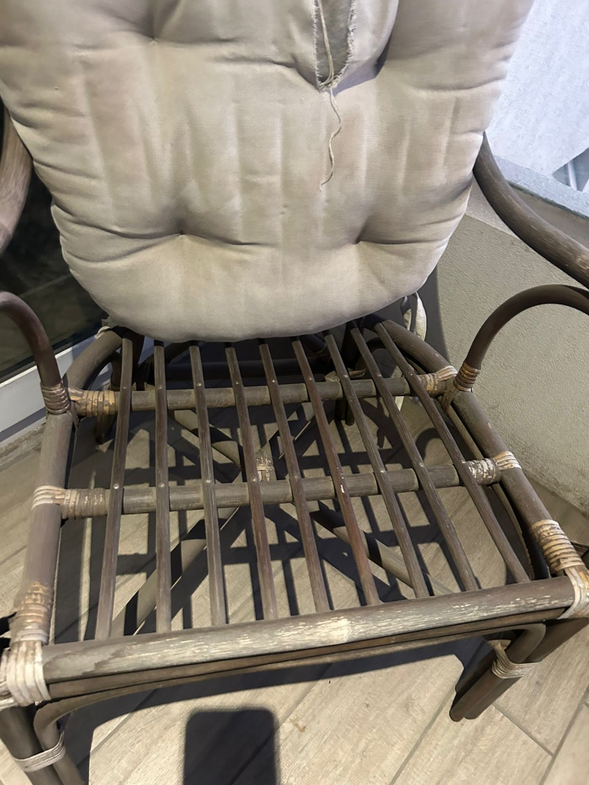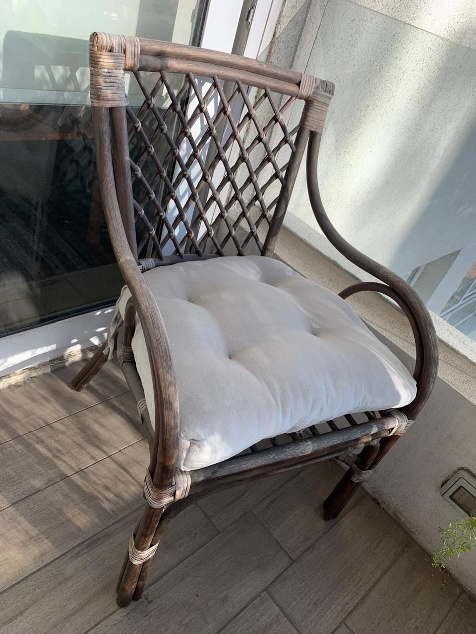 Buen estado, usados 5 años, detalle de desgaste en cojines (manchas y roturas), muebles para repintar, detalle de manchas en mesa