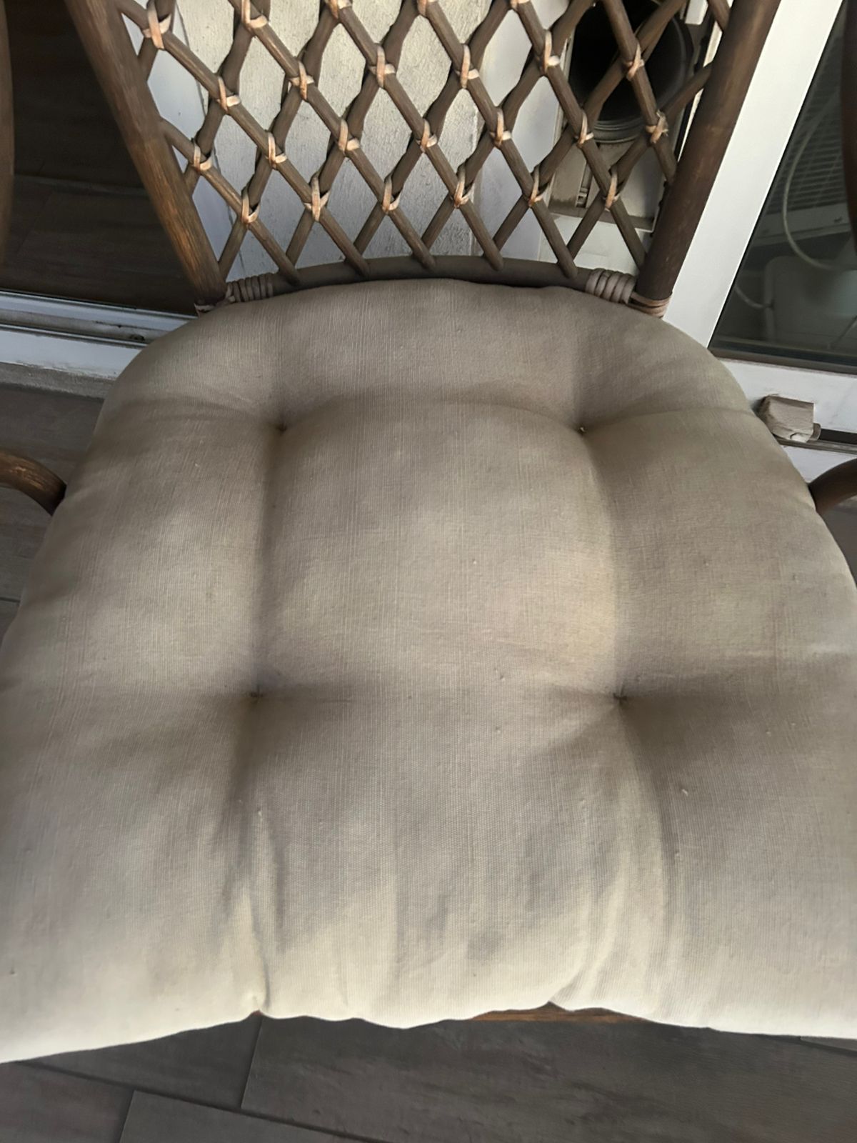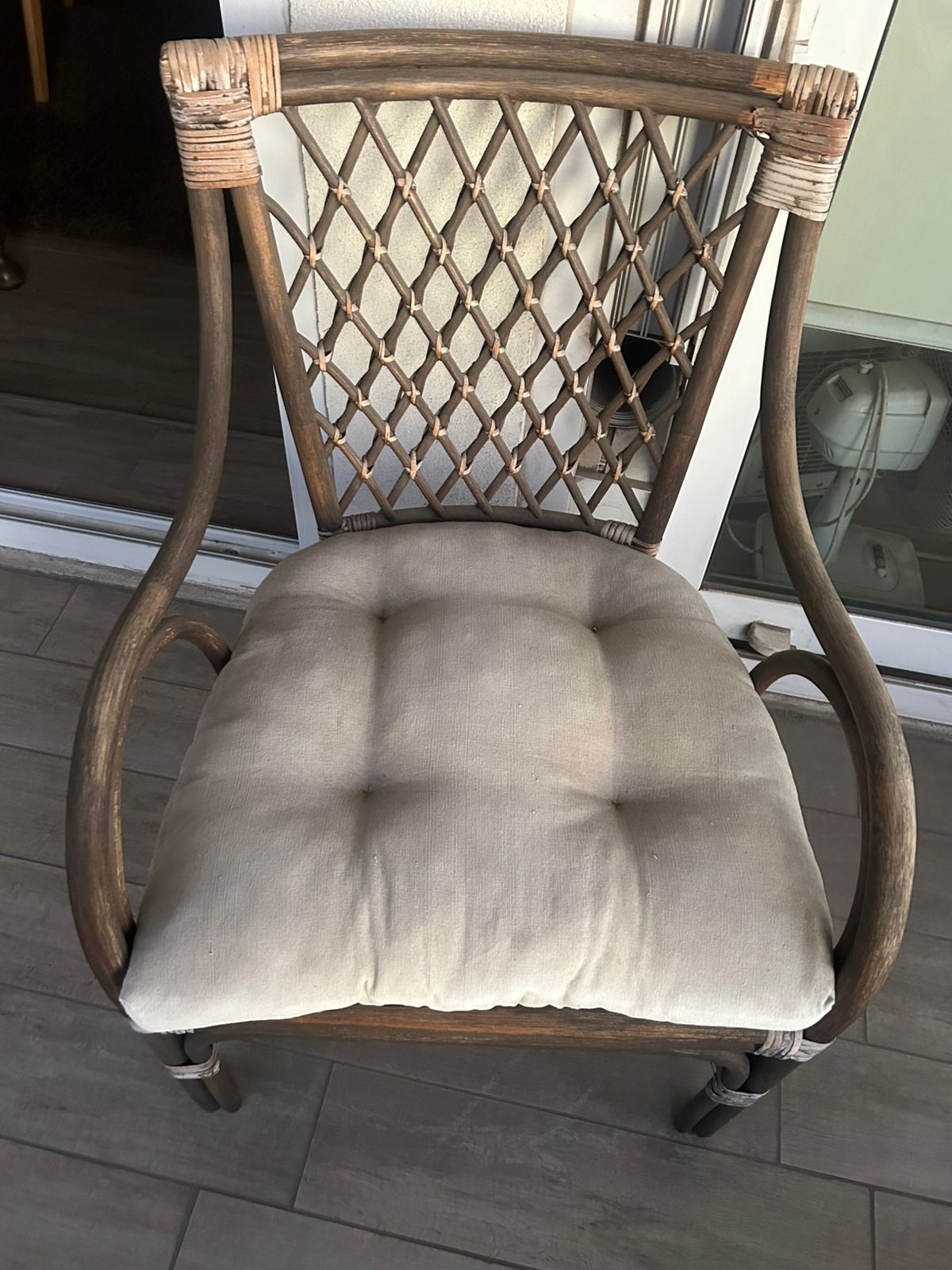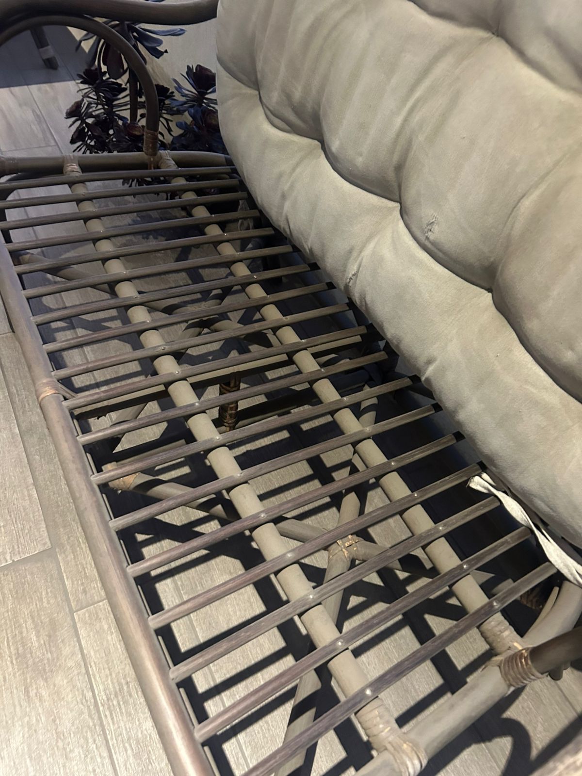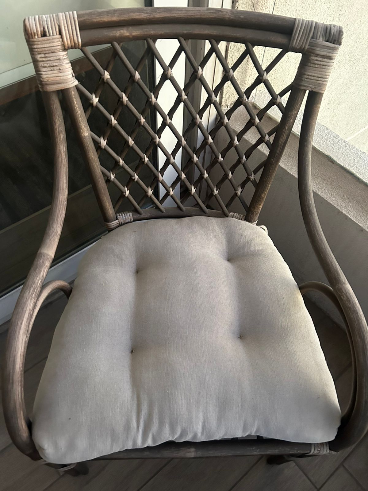 Buen estado, usados 5 años, detalle de desgaste en cojines (manchas y roturas), muebles para repintar, detalle de manchas en mesa