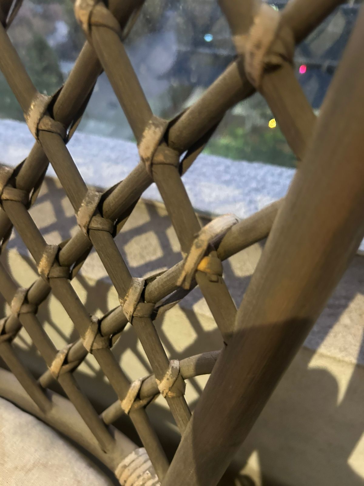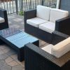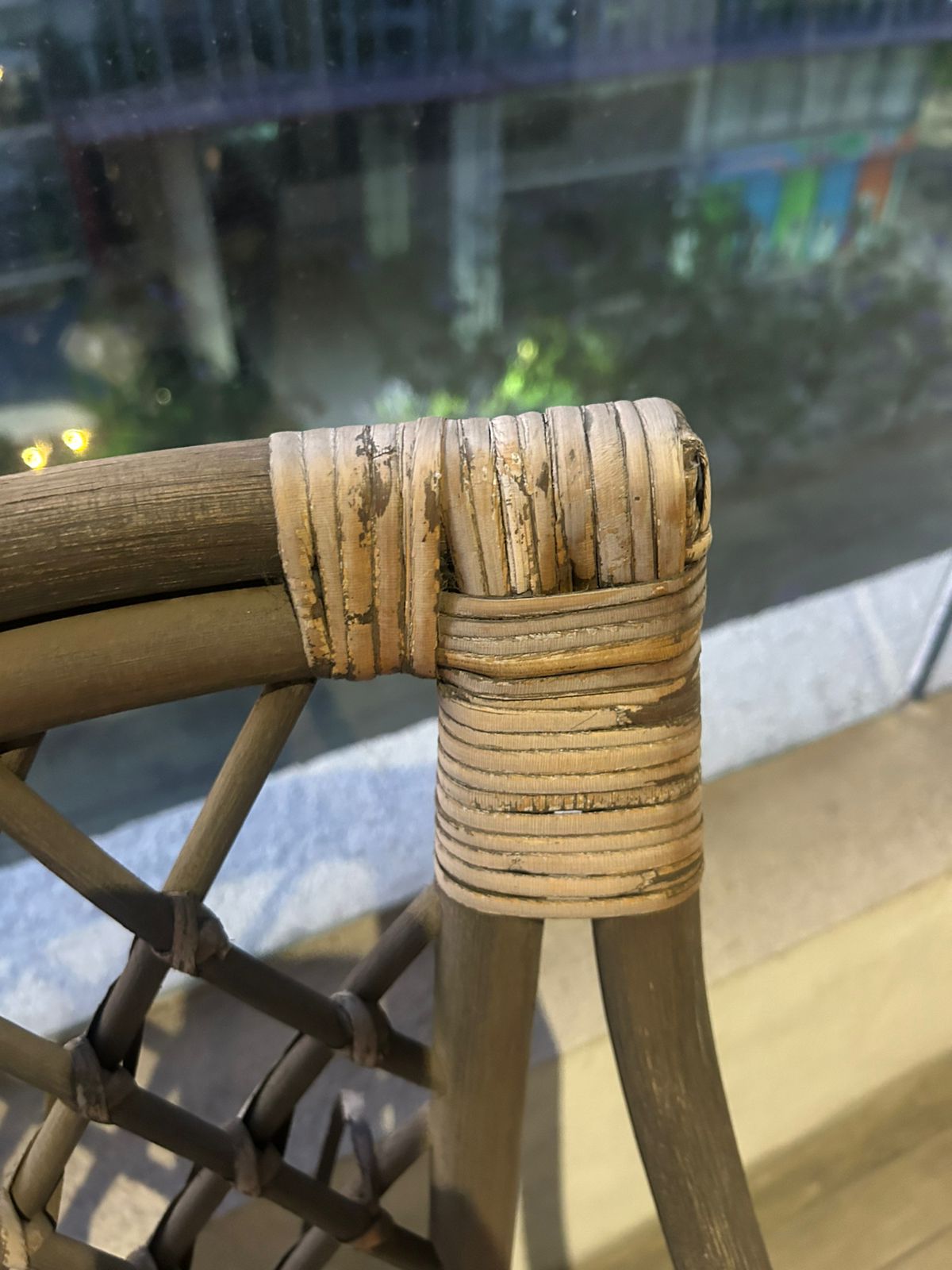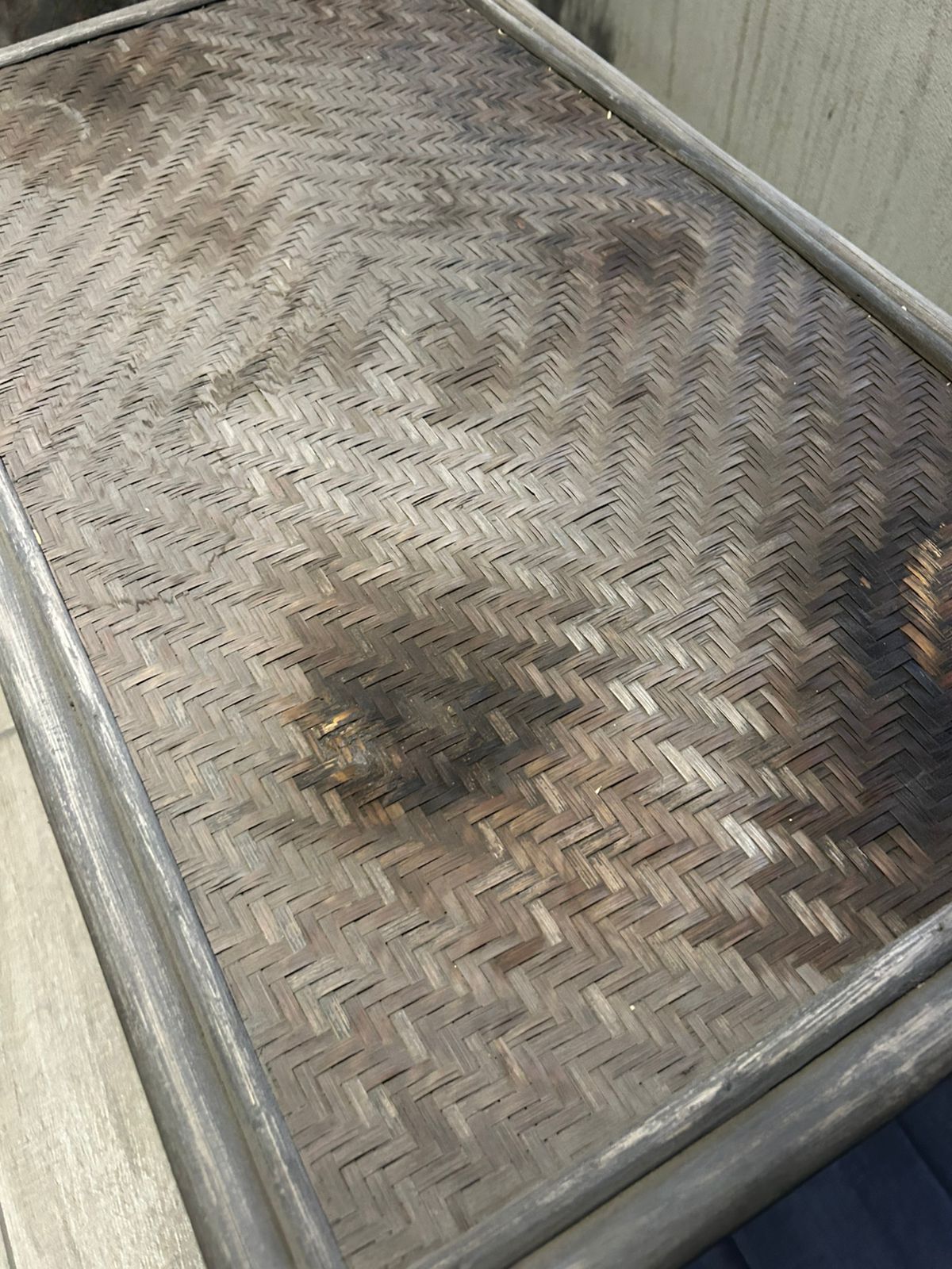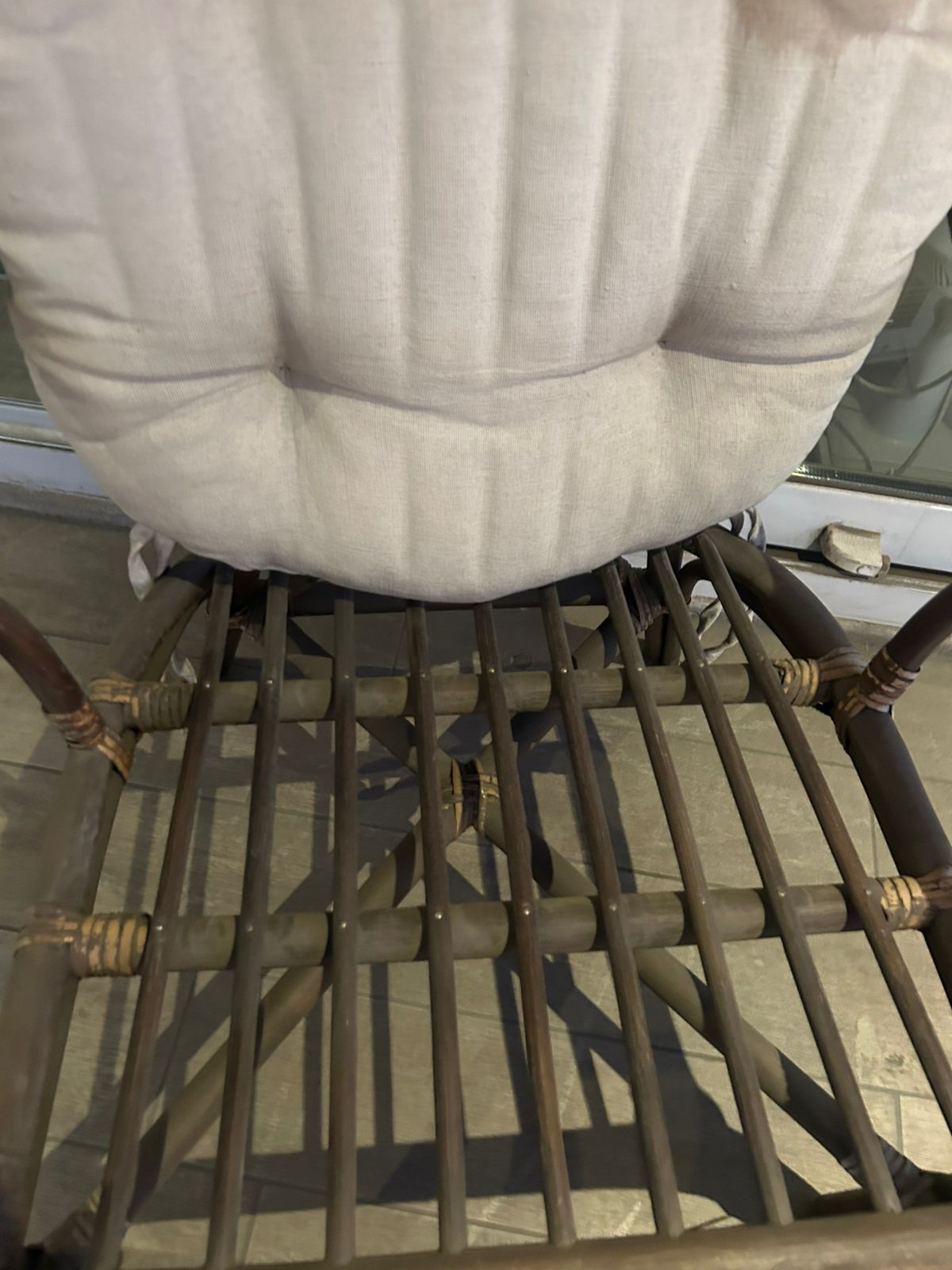 Buen estado, usados 5 años, detalle de desgaste en cojines (manchas y roturas), muebles para repintar, detalle de manchas en mesa