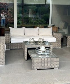 Medidas sofá 223 x 91×60 cm sillones 112 x 91×60 cm , mesas centro 84 x 44 y 128 x30 cm, mesas laterales 47 x 48 cm