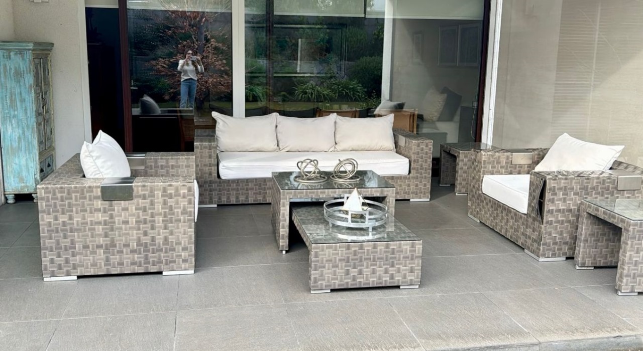 Buen estado, 5 años de uso, detalle de 1 sillón quemado por el sol se rompió tejido