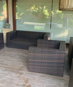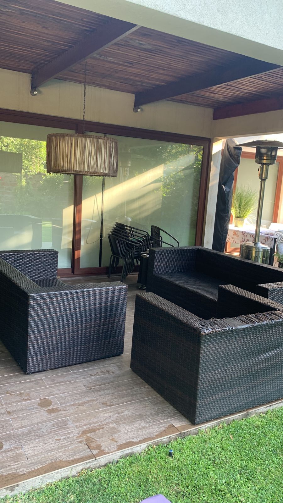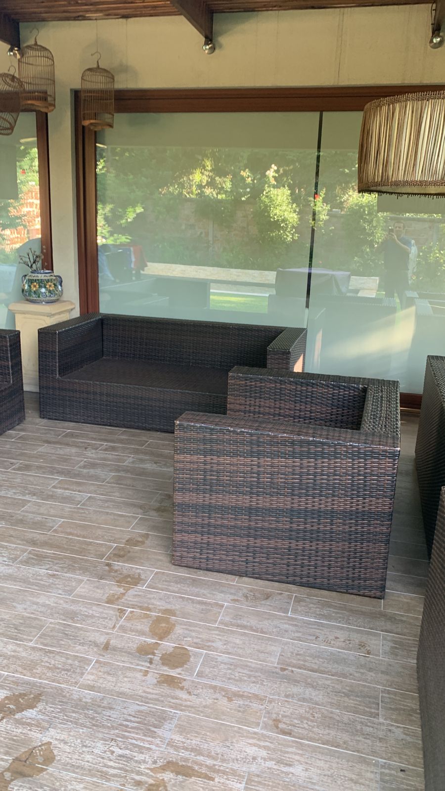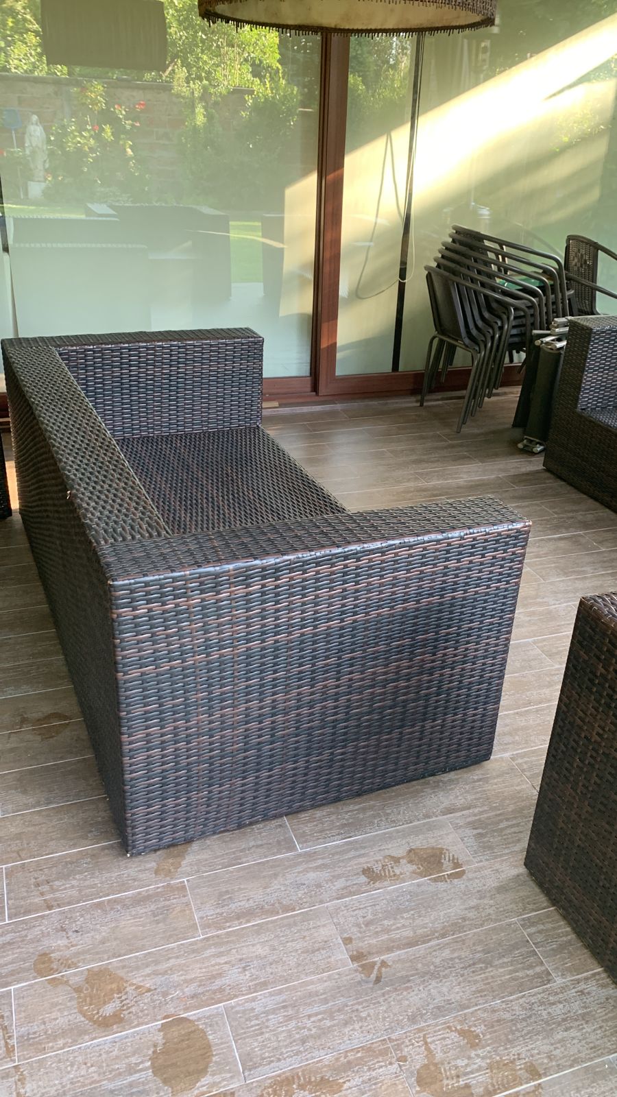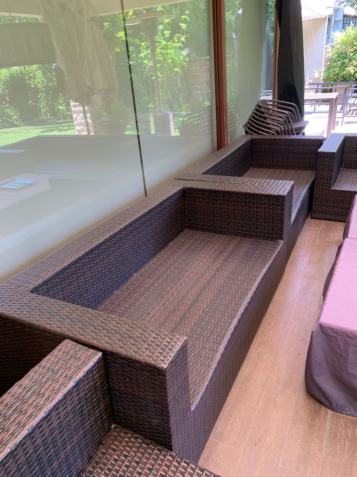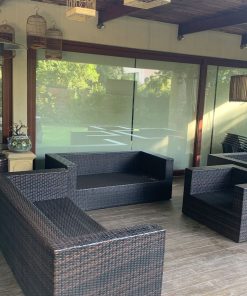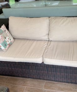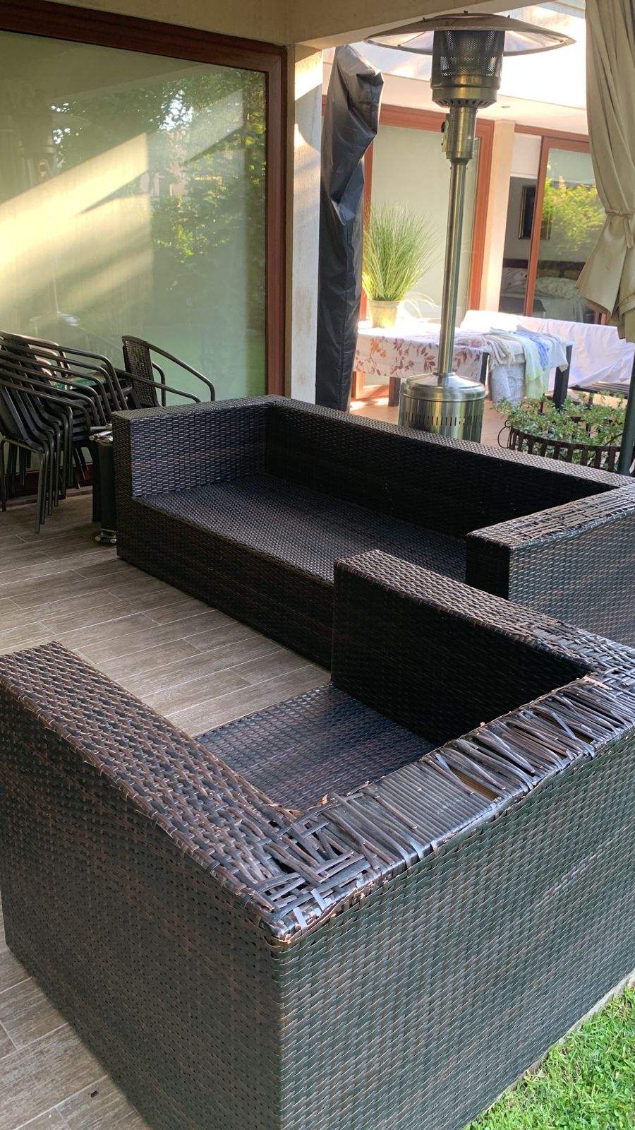 Los sillones individuales tienen roto el rattan en algunas partes, no afecta uso, detalle en brazo de sofá 3 cuerpos