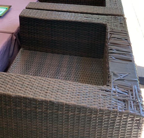 los sillones individuales están rotos, detalle en brazo de sofá 3 cuerpos