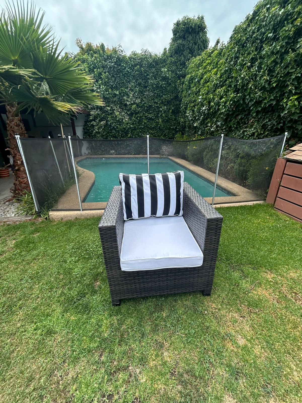 Incluye fundas y espuma alta densidad en asiento recién cambiadas, también fundas de exterior para cubrirlo