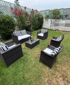 Medidas: Mesa 90x50x35 cm Sofá 135x75x67 cm sillones 70x75x67 cm sillas 55x50x80 cm