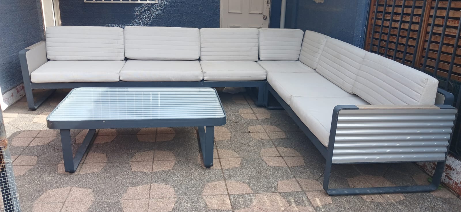Etiquetas: juego de terraza, Juego de terraza con cojines, Juego de terraza seccional 5 piezas, muebles de aluminio, muebles de exterior en buen estado, muebles de jardín, muebles de jardín aluminio, muebles de jardín en buen estado, muebles para patio, terraza exterior