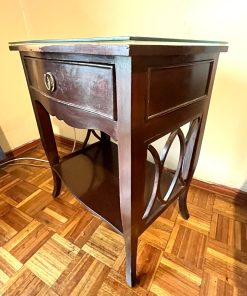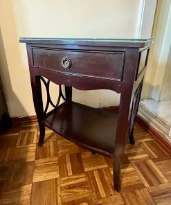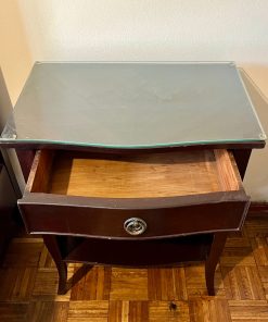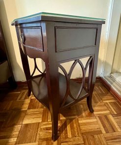 Mueblería Lozano, madera noble color caoba, veladores con vidrio en cubierta