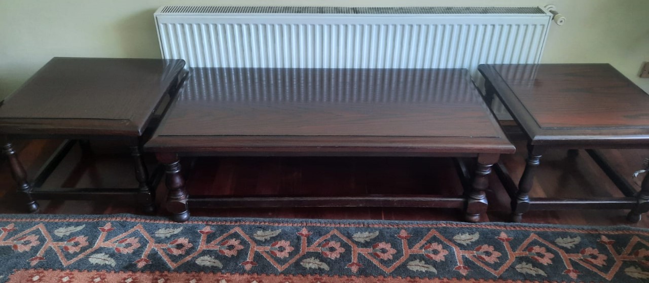 Etiquetas: entrega local mesas Raulí, juego de mesa Raulí, Juego mesa centro y laterales Raulí, mesa centro, mesa centro de segunda mano, mesas de centro y laterales, mesas laterales, mesas usadas en venta, muebles de sala en buena condición., muebles de sala Raulí, muebles Raulí en buen estado