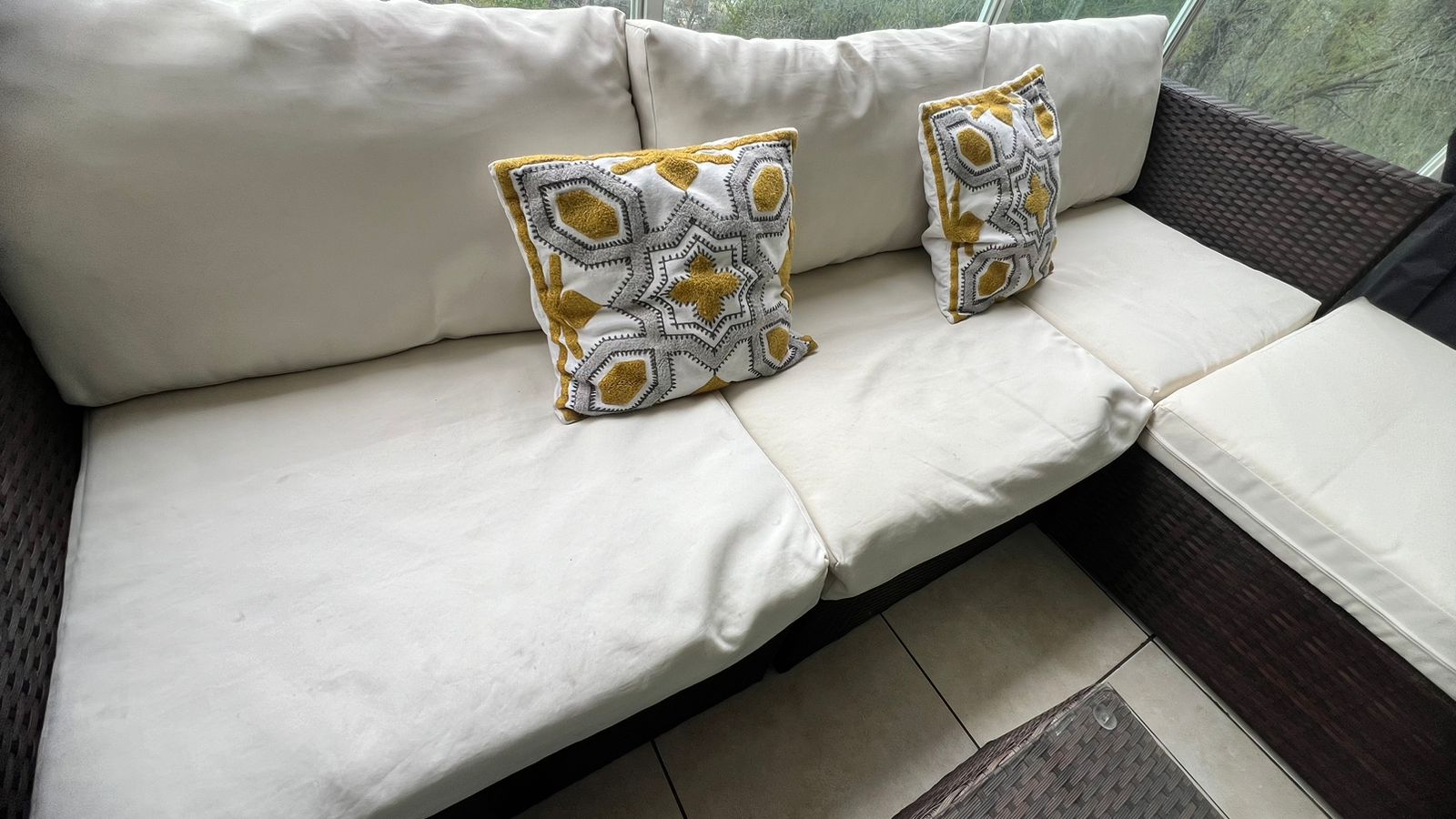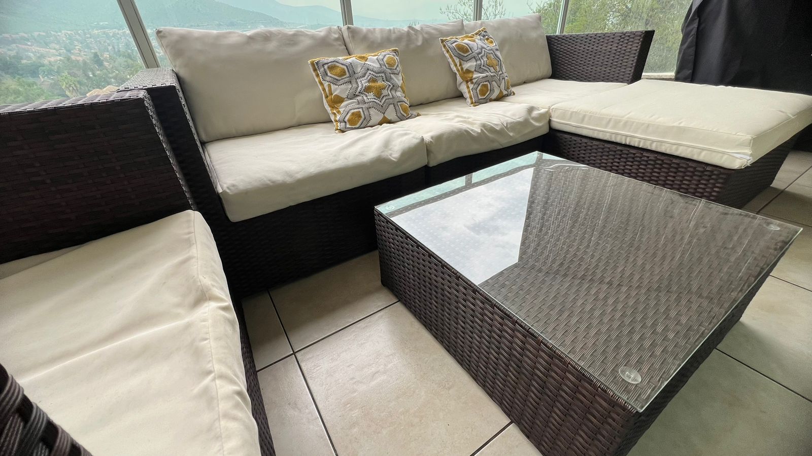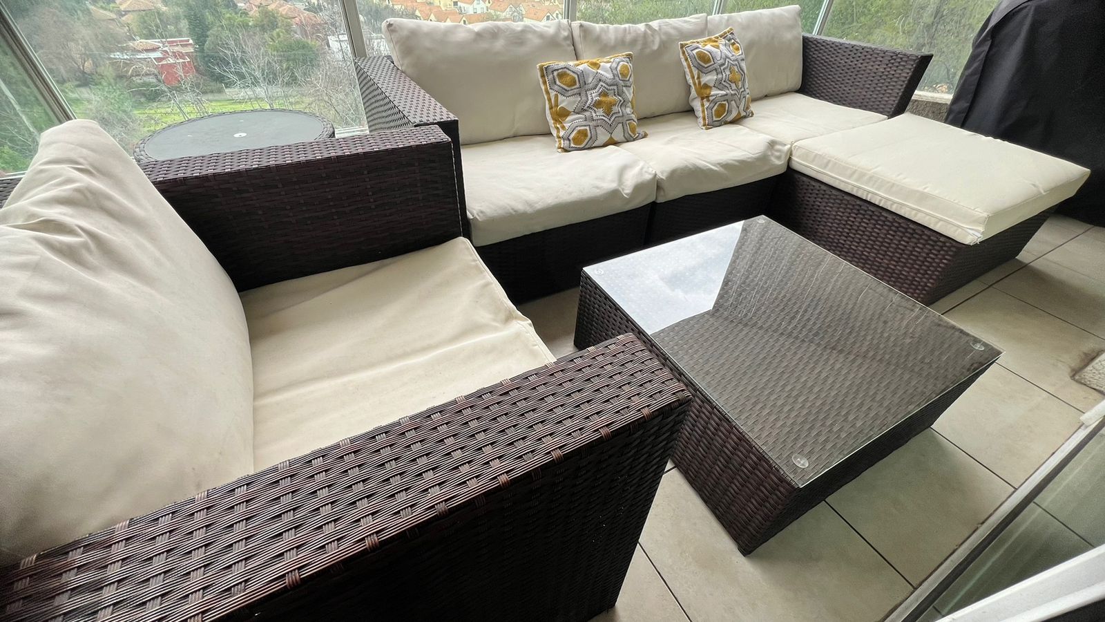 Buen estado, 3 años de uso , manchitas en cojines por uso exterior