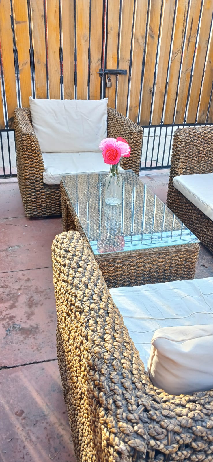Etiquetas: 4 piezas, buen estado, juego, natural, rattan, terraza