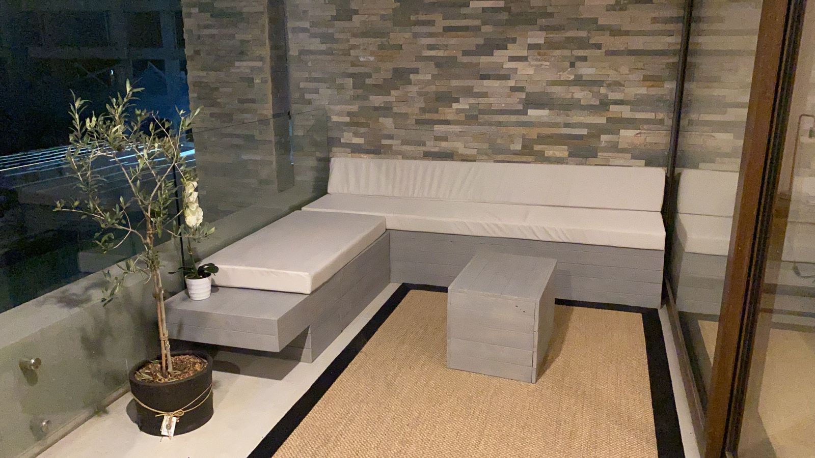 Etiquetas: cojines, Juego terraza en L, mesa de centro, rectangular