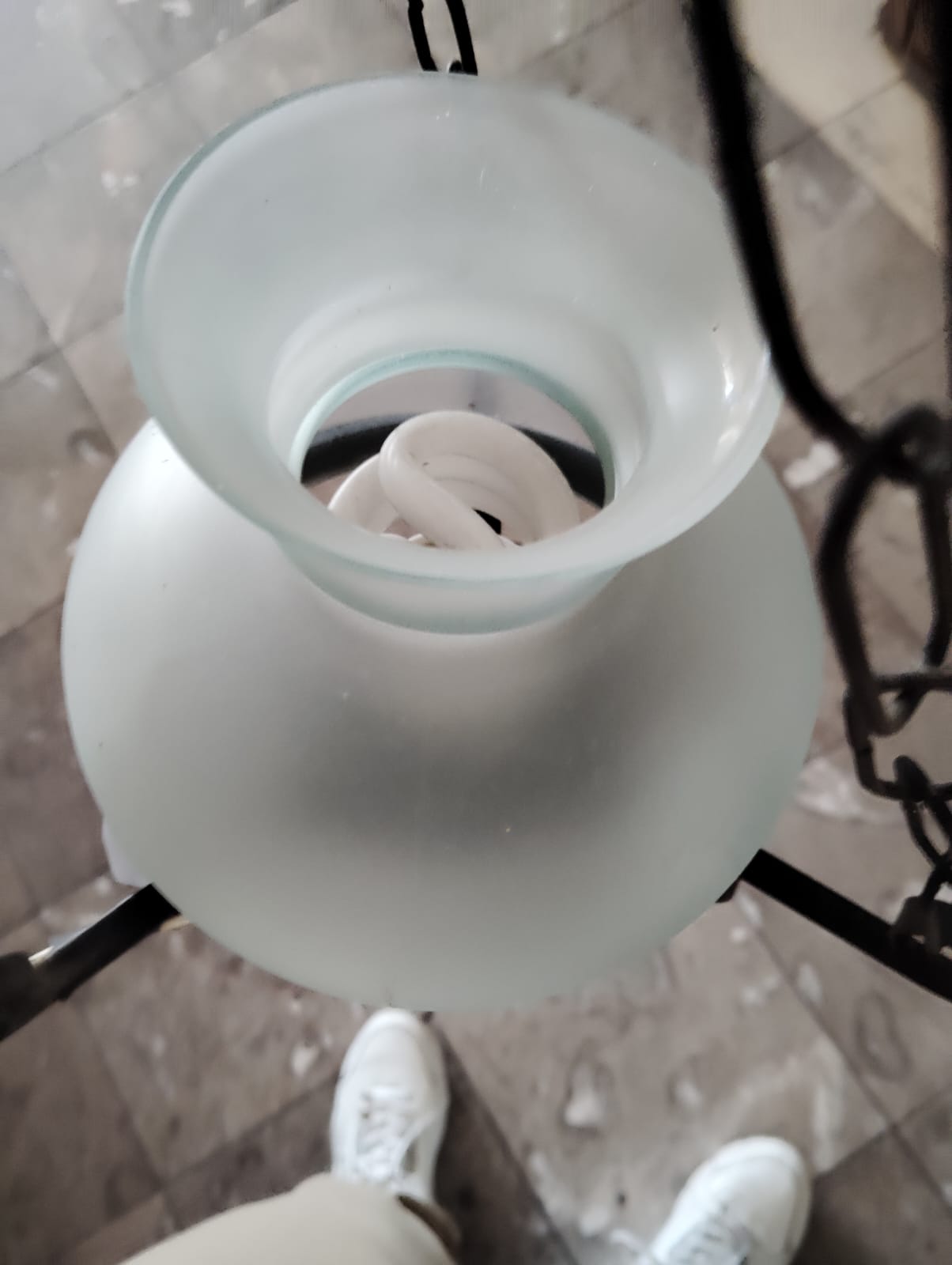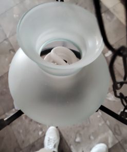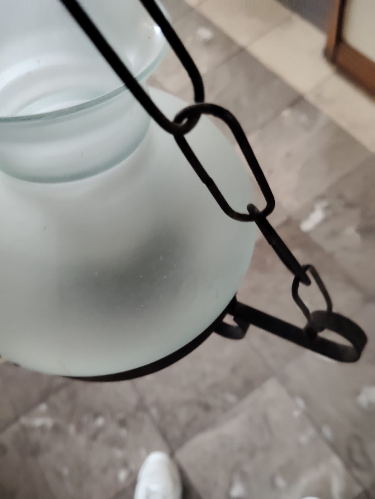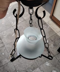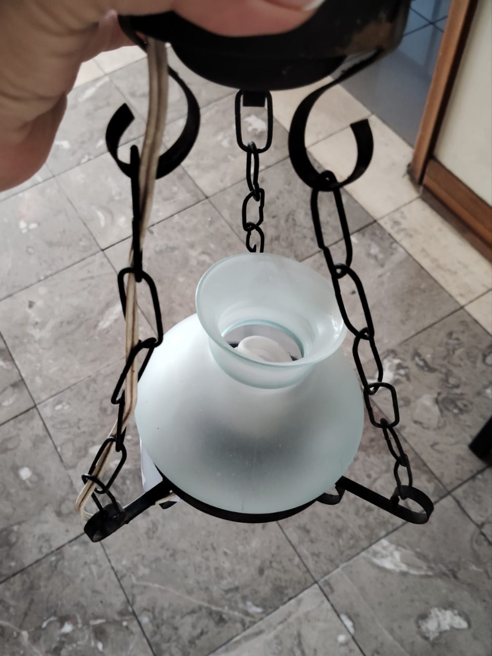 Etiquetas: antigua, buen estado, cadenas de fierro, lampara, pantalla vidrio empavonado, techo fierro