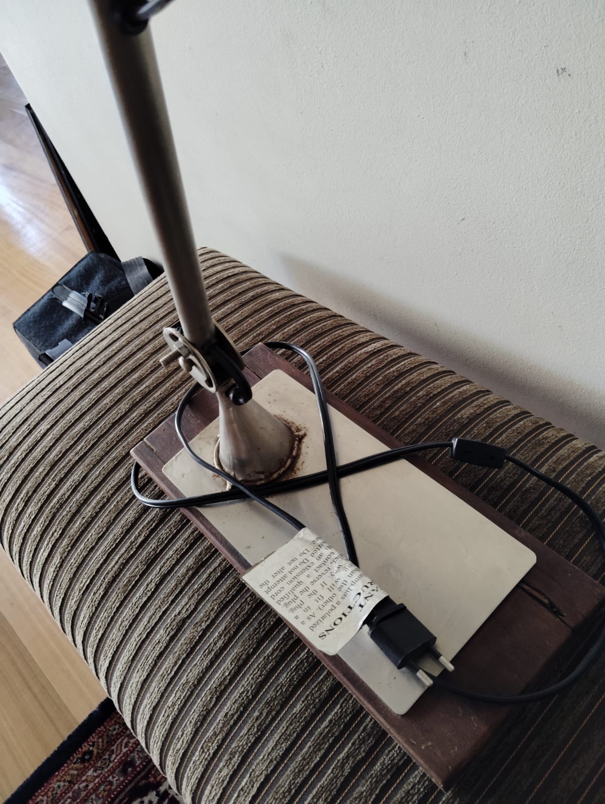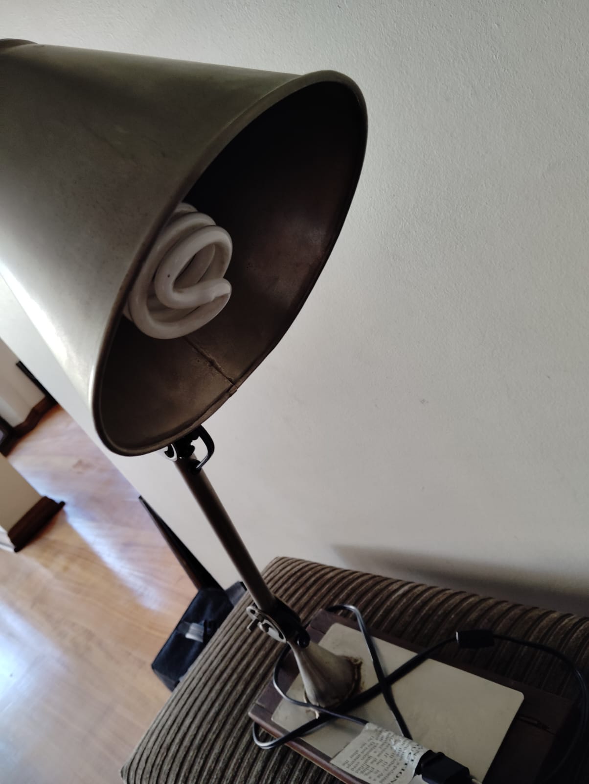 Etiquetas: base madera rustica, buen estado, escritorio, estilo industrial, lampara, metal, time of interiors