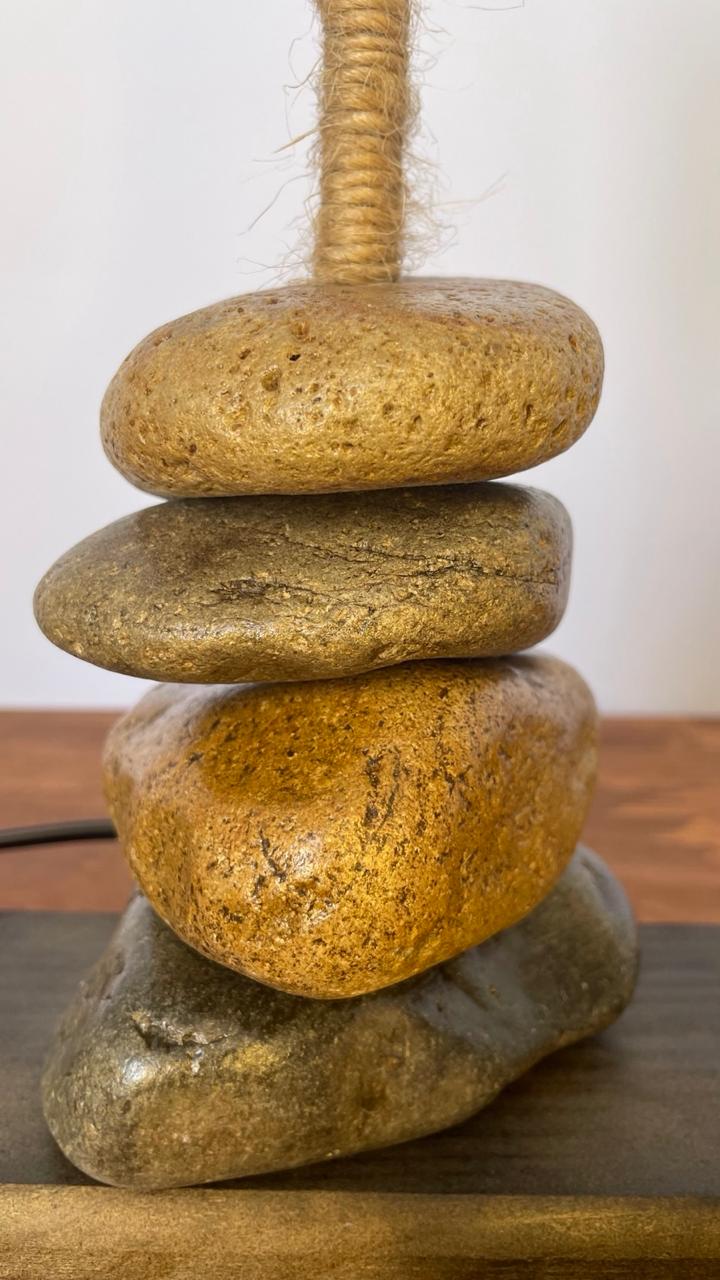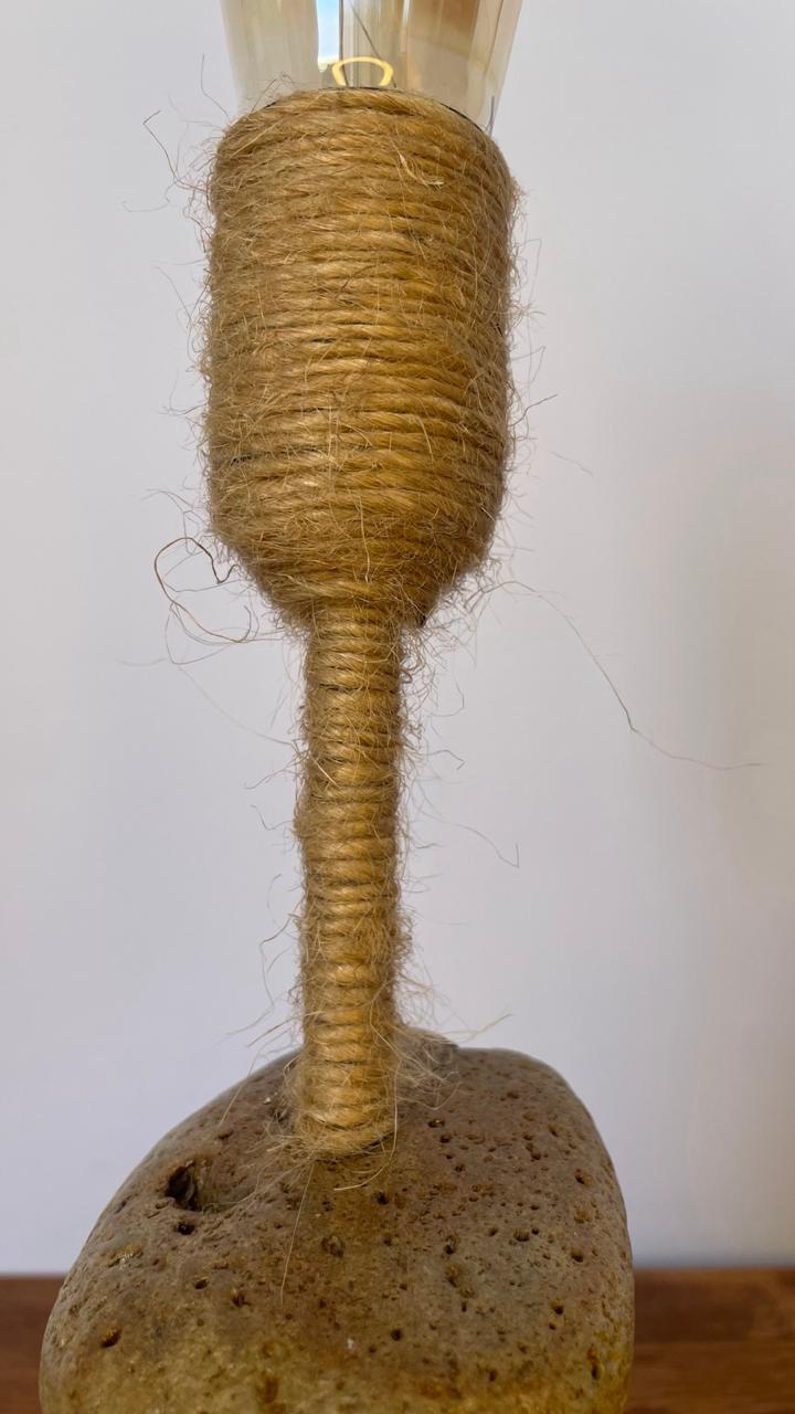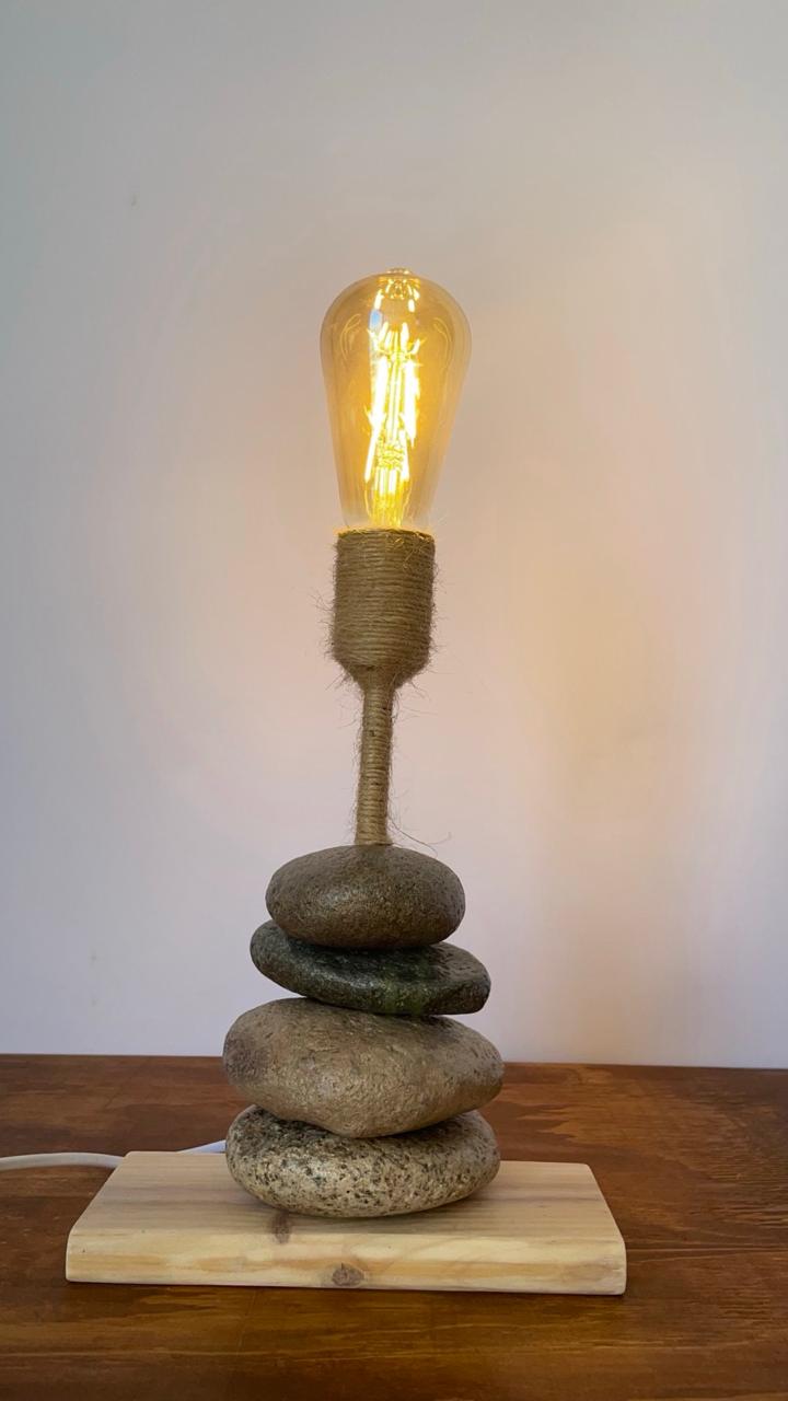 Lámpara de madera y roca