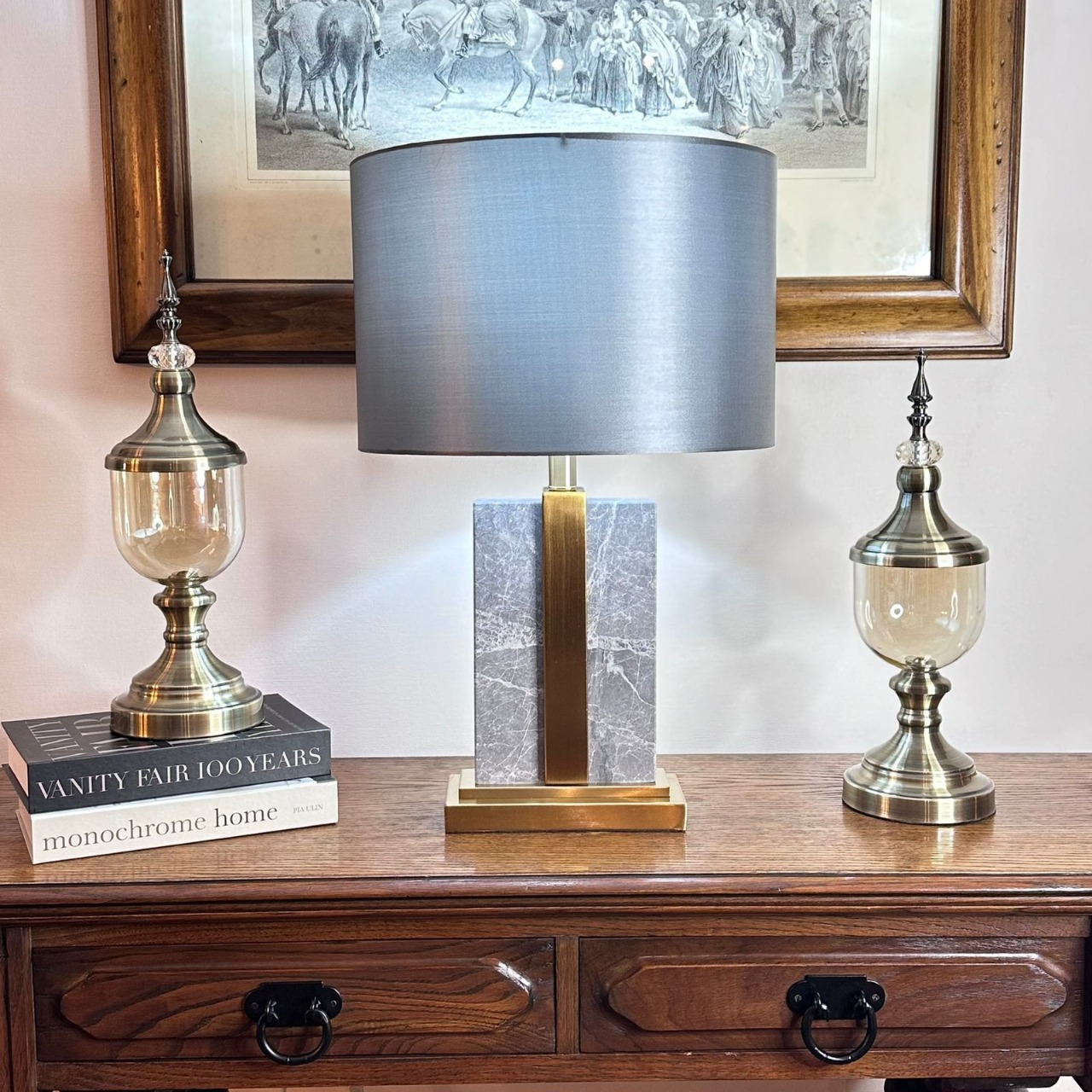 Lámpara de mesa base mármol vetado